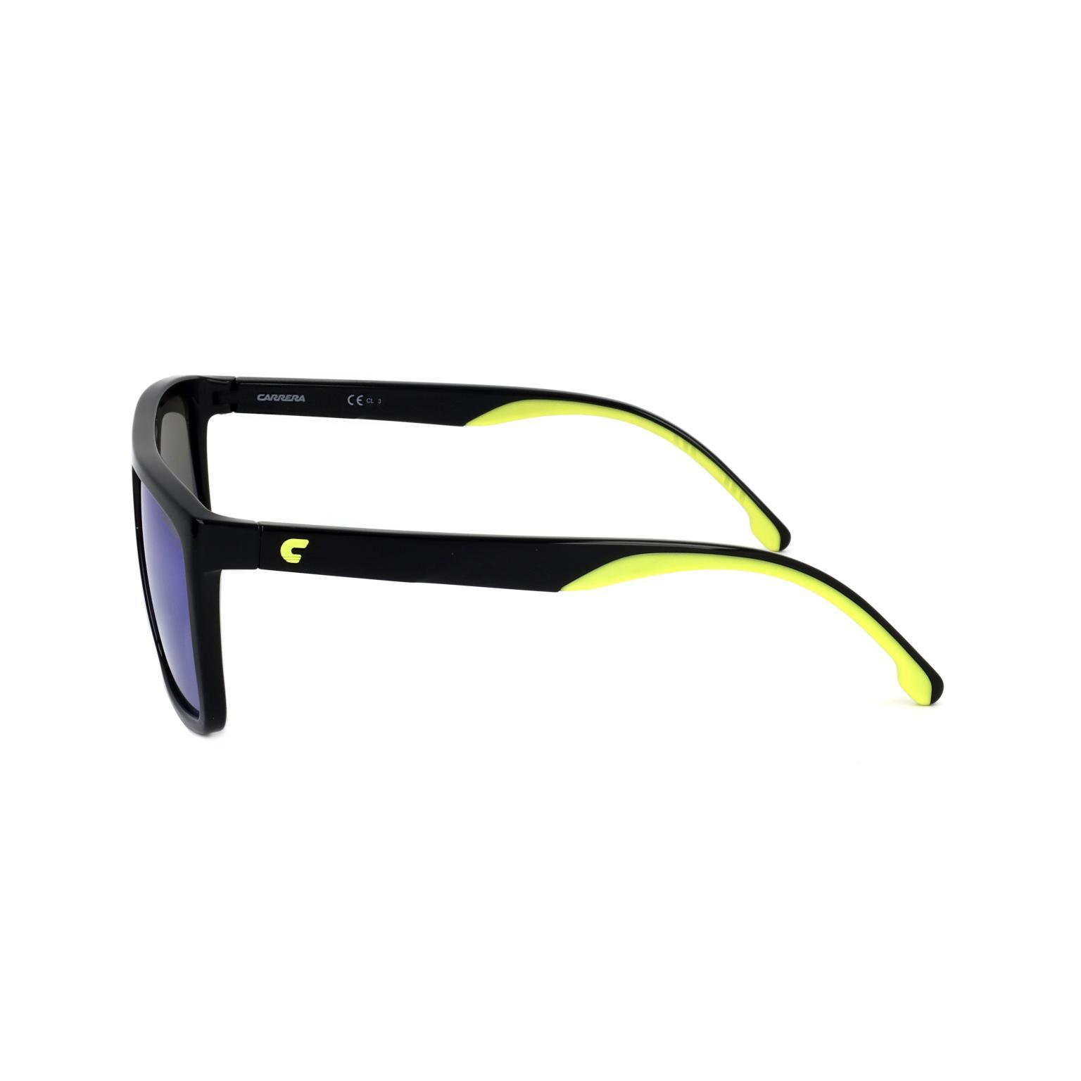 The current selection of OCCHIALI by CARRERA focuses on a robust silhouette with an emphasis on ergonomic stability. The frame features a broad bridge and substantial temples that incorporate subtle textured details near the hinges, highlighting a technical aesthetic. The lenses, with a diameter of 58mm, are securely integrated into a sturdy rim that provides a wide field of vision while maintaining a clean, streamlined profile.