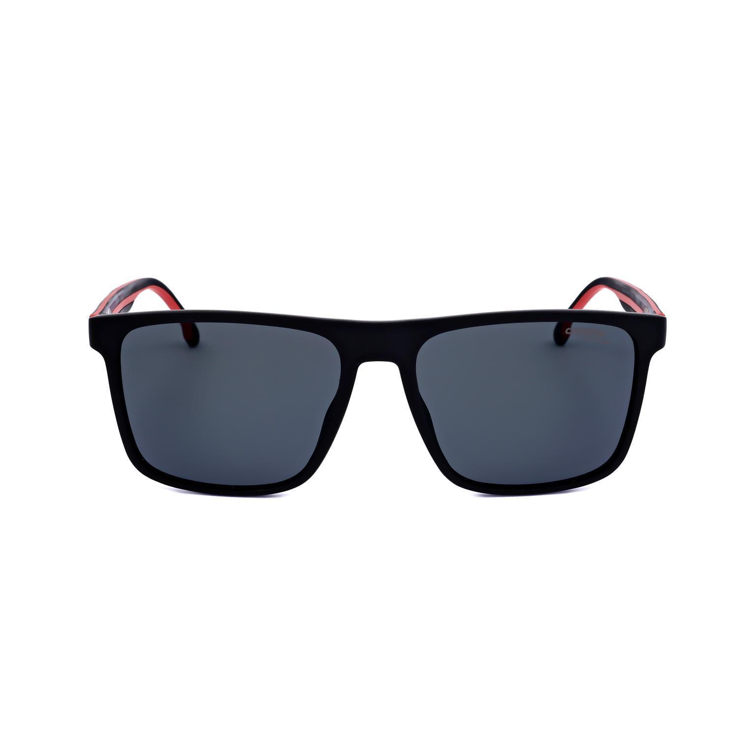 These men's sunglasses by CARRERA feature a robust construction and a classic rectangular frame, offering a sleek and enduring aesthetic. The design is characterized by clean lines and substantial temples, providing a confident profile. Subtle metallic accents at the hinge points add a touch of refined detail to the frame, ensuring a distinct commercial appeal.