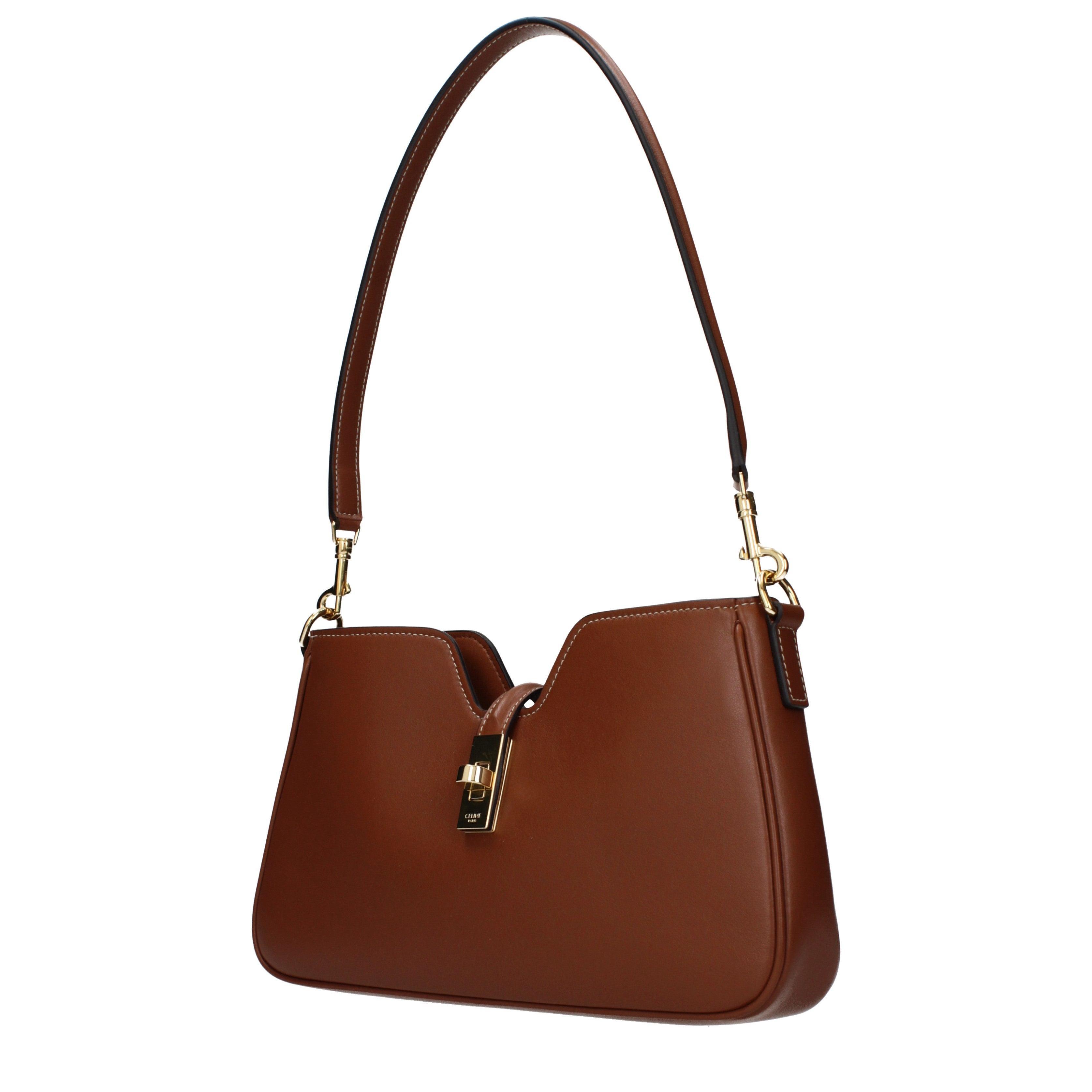 This shoulder bag camille 16 by CELINE is a masterclass in minimalist architecture, featuring a distinctive notched topline and a slim, elegant profile. The refined metallic turn-lock hardware secures the contents while providing a focal point of artisanal precision. Its slender strap is attached via discreet gold-tone clips, allowing for a clean transition from the body of the bag to the shoulder, emphasizing its sleek, rectangular base.