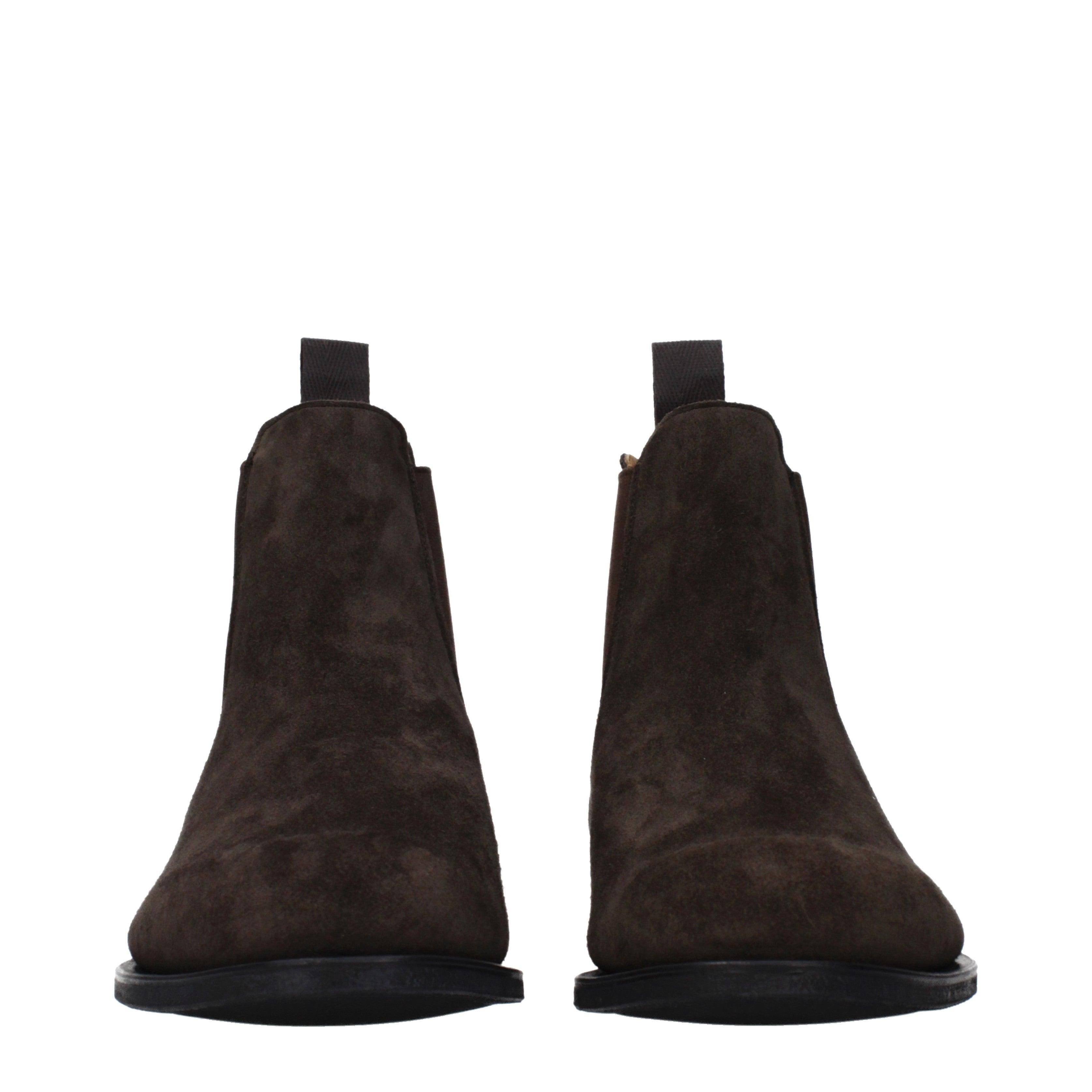 These Amberley r 2.0 ankle boots by CHURCH'S offer a timeless appeal with their distinguished Chelsea design, crafted for the discerning B2B buyer. The sleek profile is defined by a classic round toe and expertly integrated elastic side panels, ensuring both ease of wear and a polished appearance.Constructed from fine suede, these boots boast a visibly soft and luxurious finish, promising a sophisticated touch. The robust rubber sole provides reliable traction and resilience, complemented by a low, flat heel for sustained wearing comfort, making them a foundational piece for any quality footwear collection.