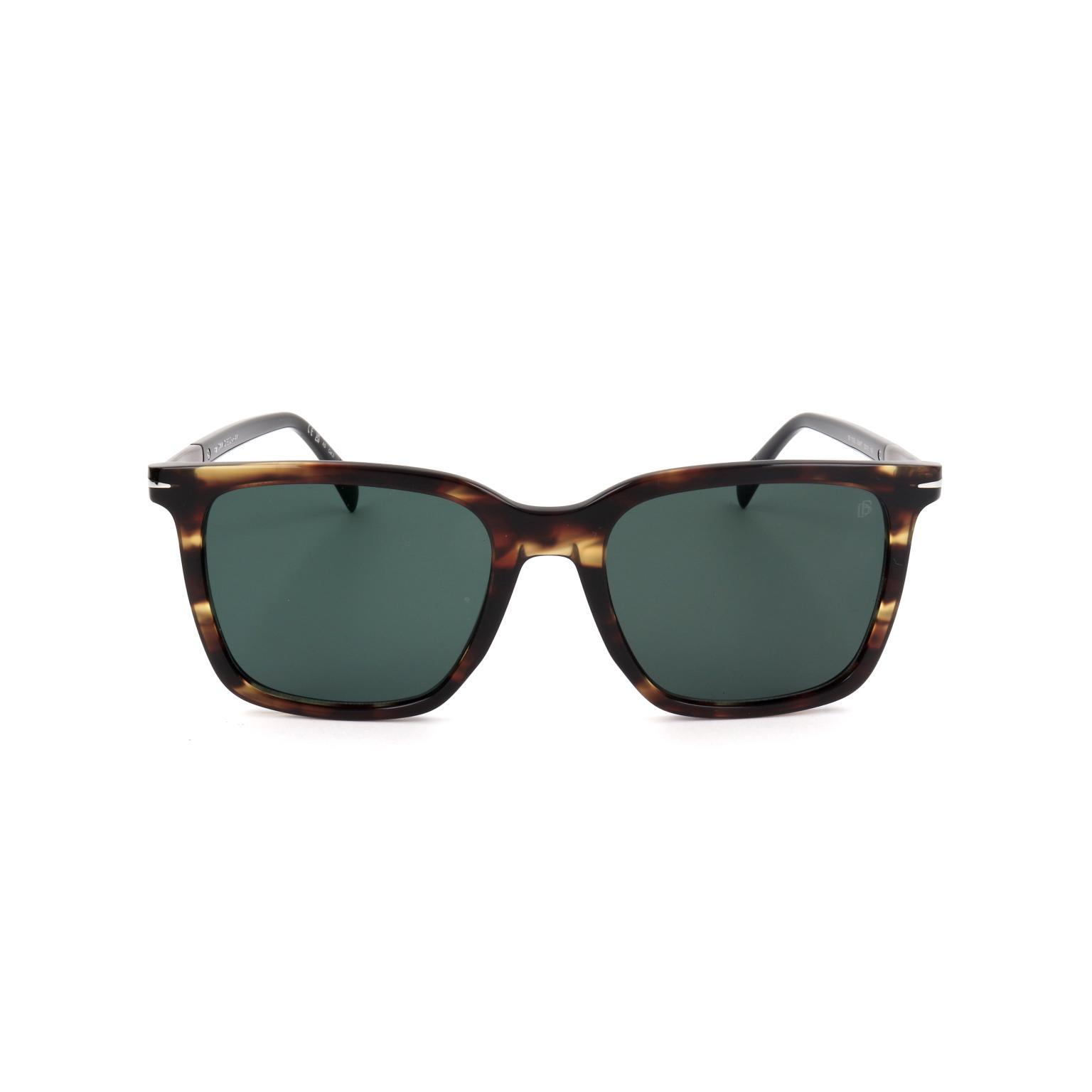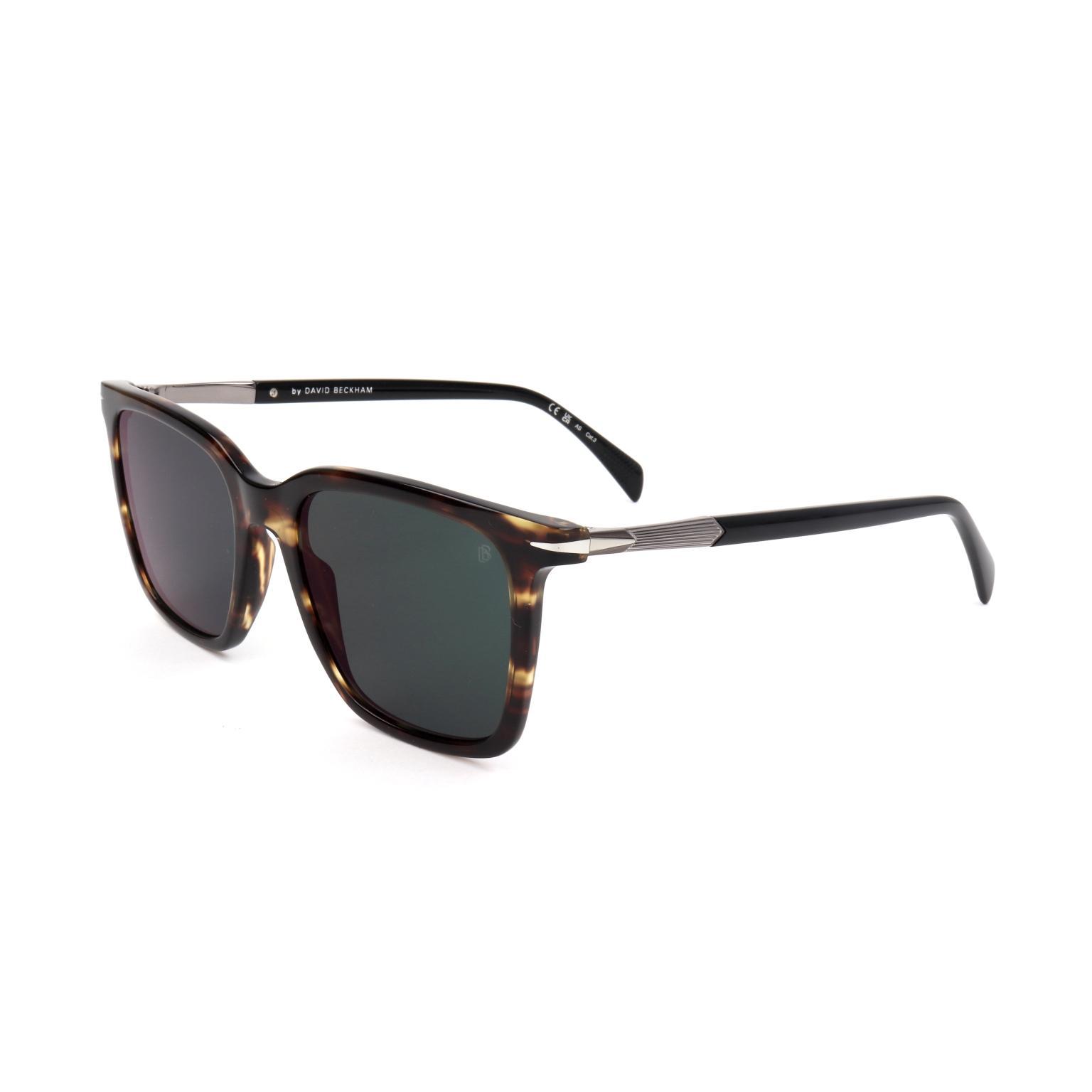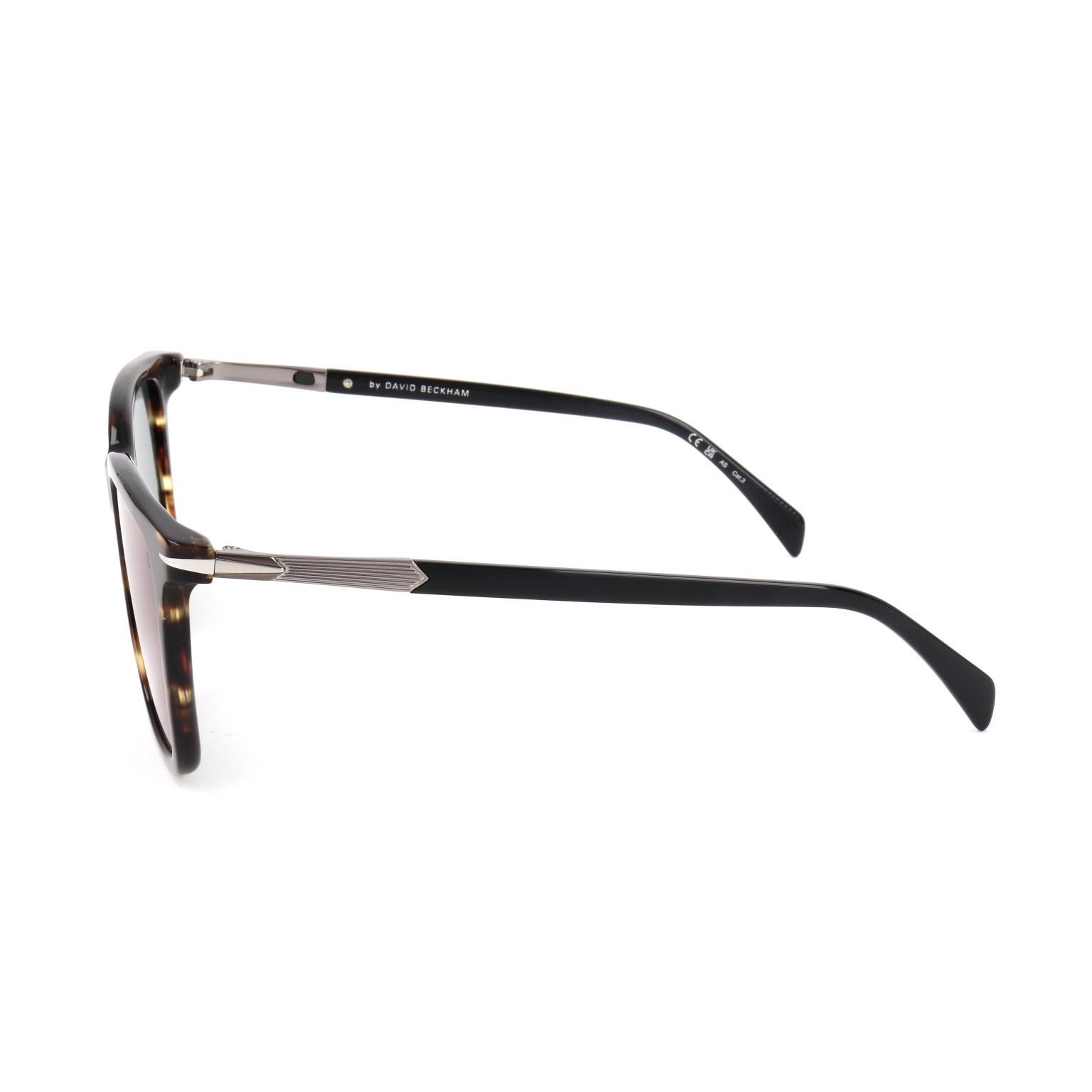 These men's sunglasses from DAVID BECKHAM showcase a distinctive rectangular frame, softened by subtly curved edges for a sophisticated profile. The design is characterized by its balanced proportions and the elegant metal detailing at the temples, reflecting a modern yet enduring aesthetic.