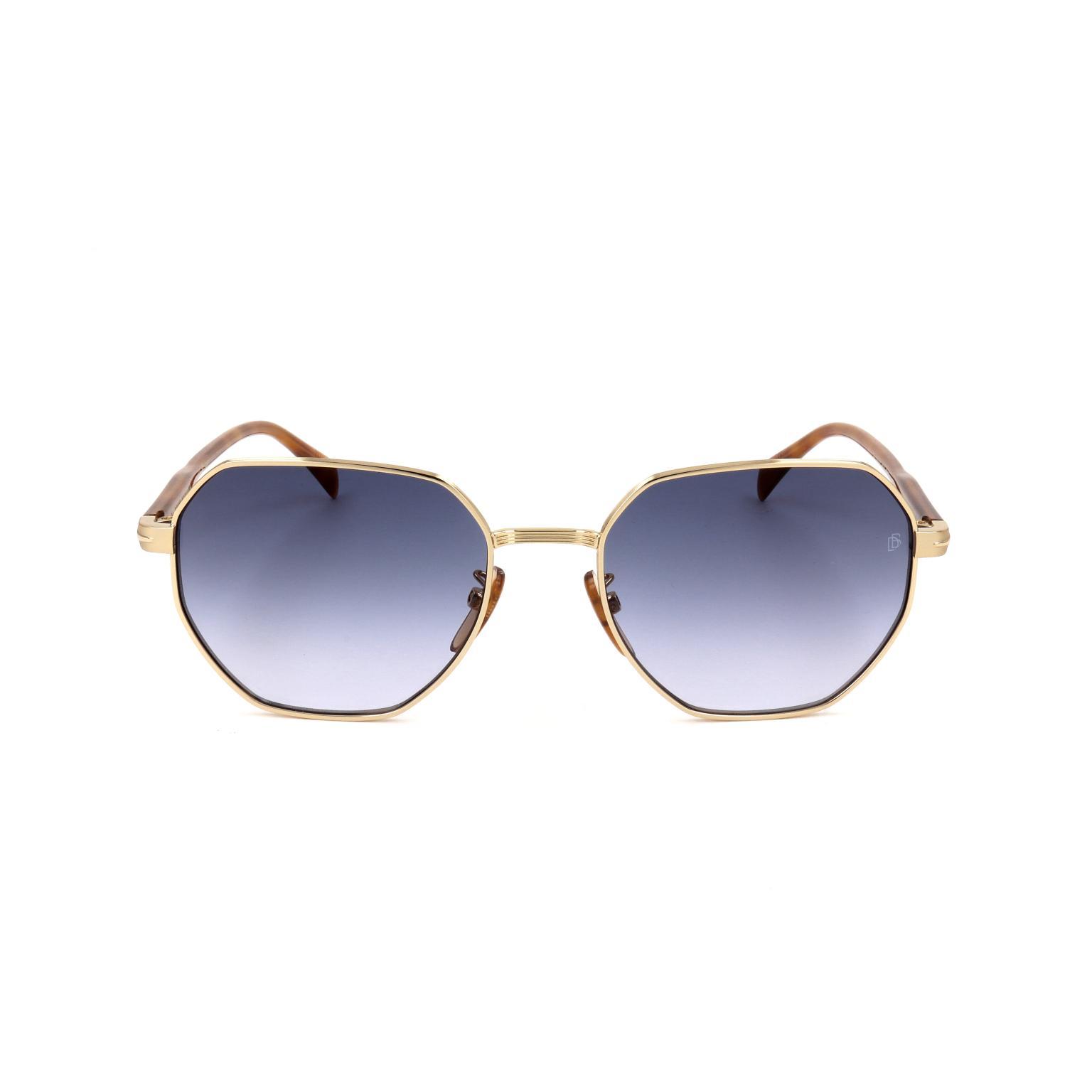 These eyewear by DAVID BECKHAM offer a truly sophisticated profile, featuring elegantly faceted octagonal lenses. The slender metallic frame is reinforced by a subtle double bridge, providing a refined structural integrity. Its sleek lines and meticulously crafted hinges contribute to an air of understated luxury.