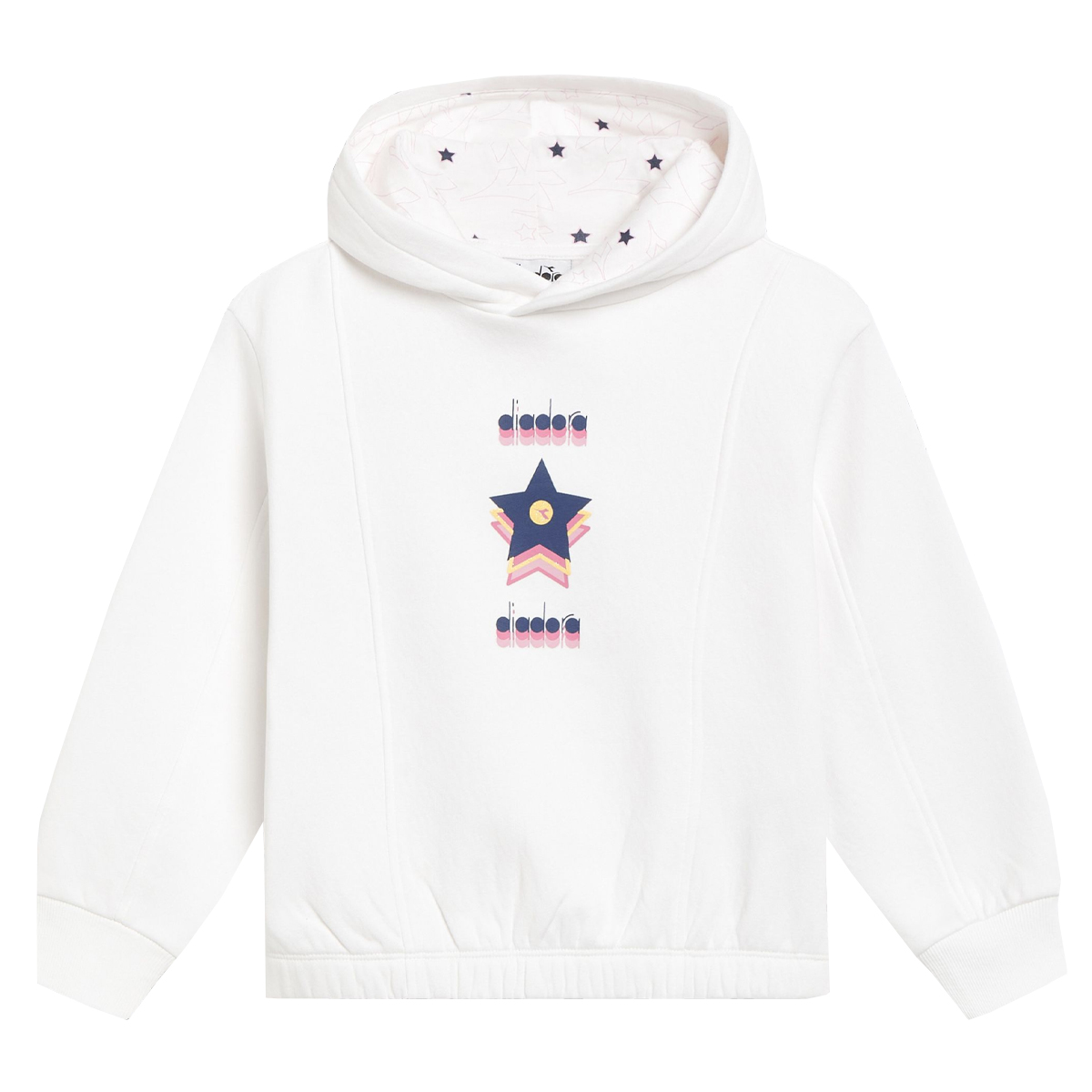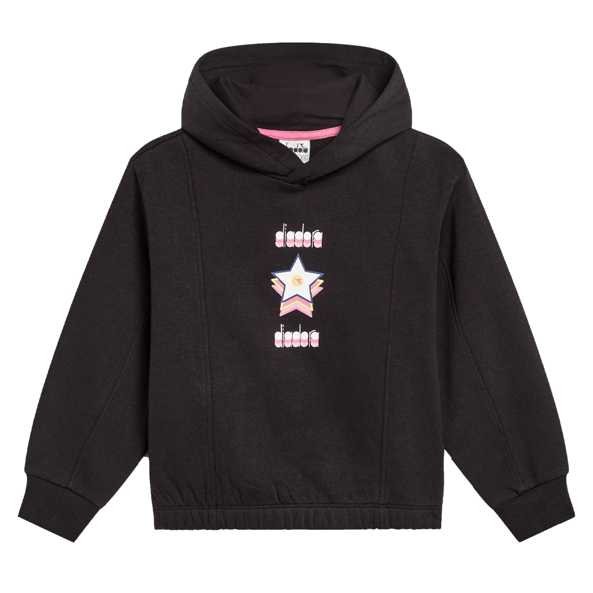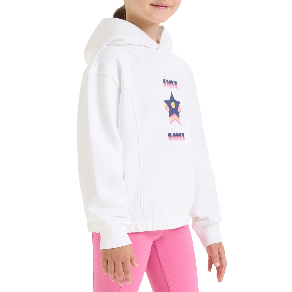 SWEATSHIRT, FOR GIRLS, WITH HOOD, LONG SLEEVES, SOLID COLOUR, FLEECE, PRINTED LOGO