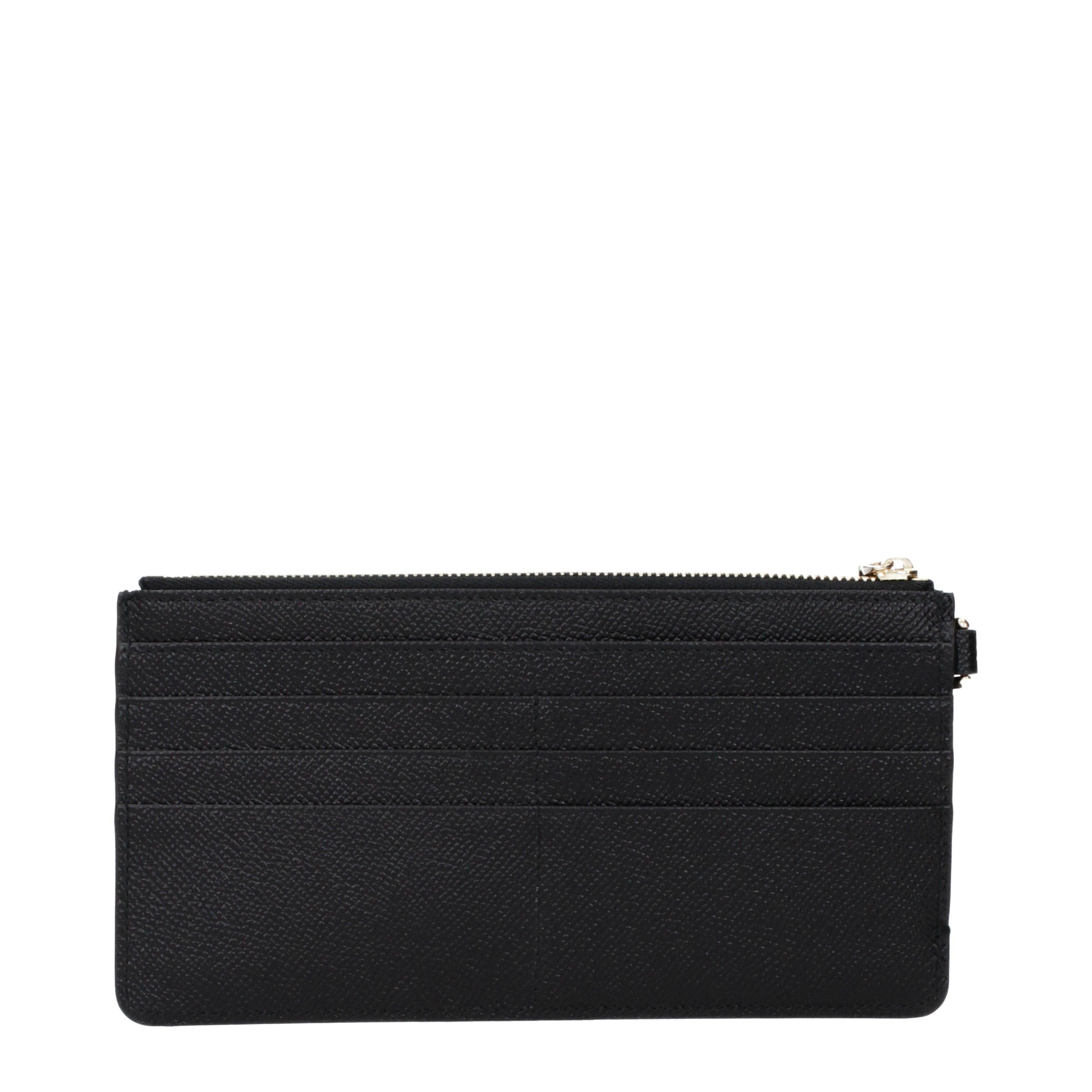This wallet from DOLCE&GABBANA presents a sleek profile and a structured design, emphasizing both style and utility. Its carefully crafted form features clean edges and a distinctive texture, signifying a commitment to detail.Constructed from premium leather, this piece offers exceptional durability and a pleasant tactile experience. Functionality is paramount, with six card slots, five internal compartments, and a dedicated coin pocket secured by a robust zip. The main closure system involves a secure zip, complemented by a front flap with a snap button, ensuring contents are safely stored. Gold-toned hardware accents provide a touch of opulence to its compact 10x19 cm structure.