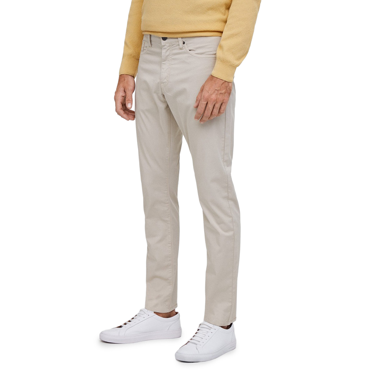 These PANTALONI F10 5 GD LT GAB by FACONNABLE present a sophisticated approach to the classic five-pocket silhouette. The garment features a precise zip and button closure, reflecting the brand's commitment to high-end manufacturing standards and a refined profile that suits a variety of professional retail environments.