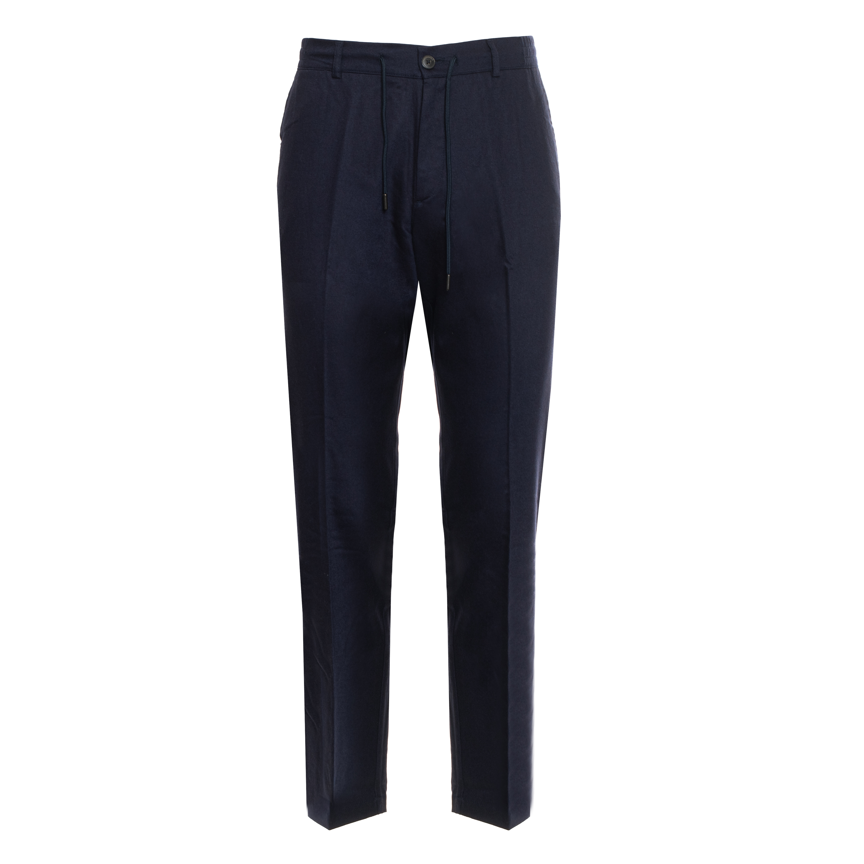 These casual trousers SMT FLAN JOG CUFF by FACONNABLE are a masterclass in relaxed tailoring. The design features a crisp front crease and a tapered leg that provides a sharp, structured appearance. A functional drawstring waist is paired with a traditional button and zip fastening, allowing for a versatile fit that bridges the gap between formal and leisure wear.