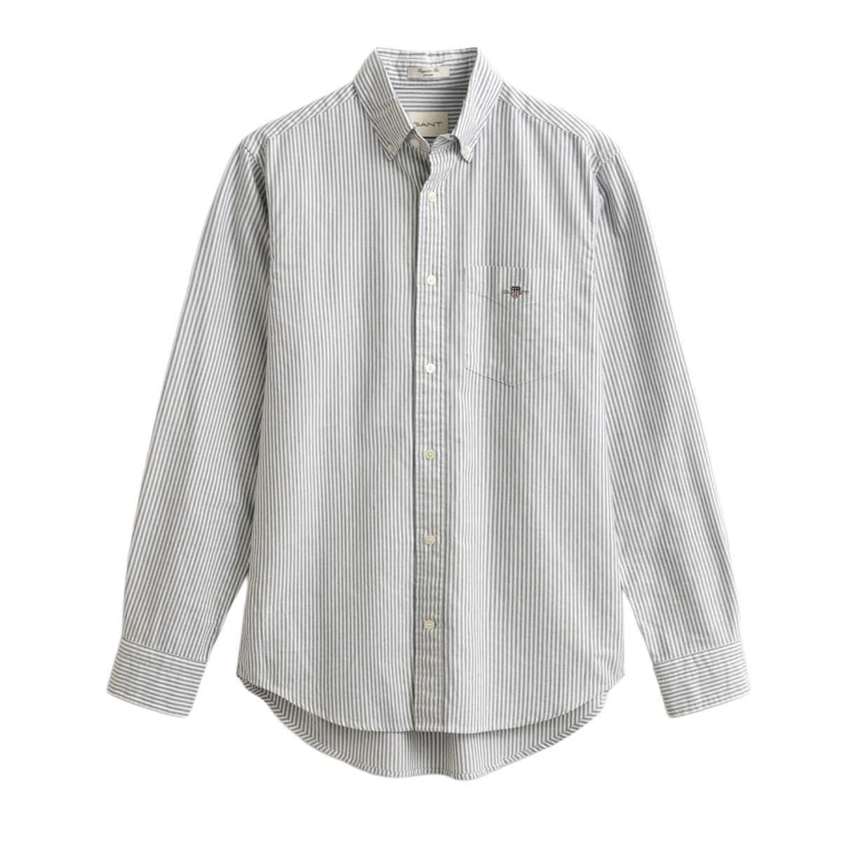 STRIPED SHIRT, FOR MEN, WITH POCKET, BUTTON DOWN, REGULAR FIT, LONG SLEEVES, BI-COLOR, EMBROIDERED LOGO, BUTTONS CLOSURE