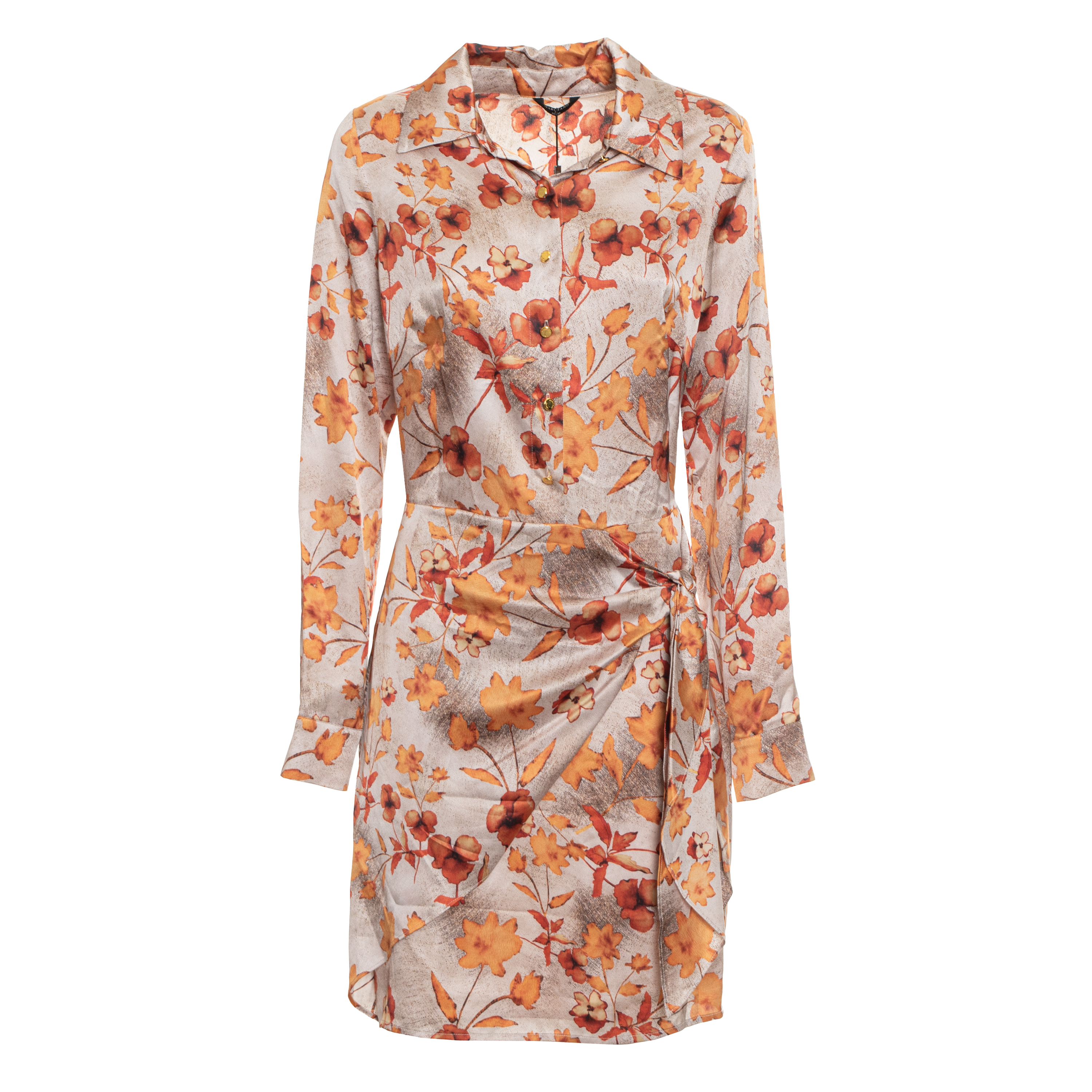 SHORT DRESS, FOR WOMEN, LONG SLEEVES, MULTICOLOR, BUTTON CLOSURE, WITH LOGO