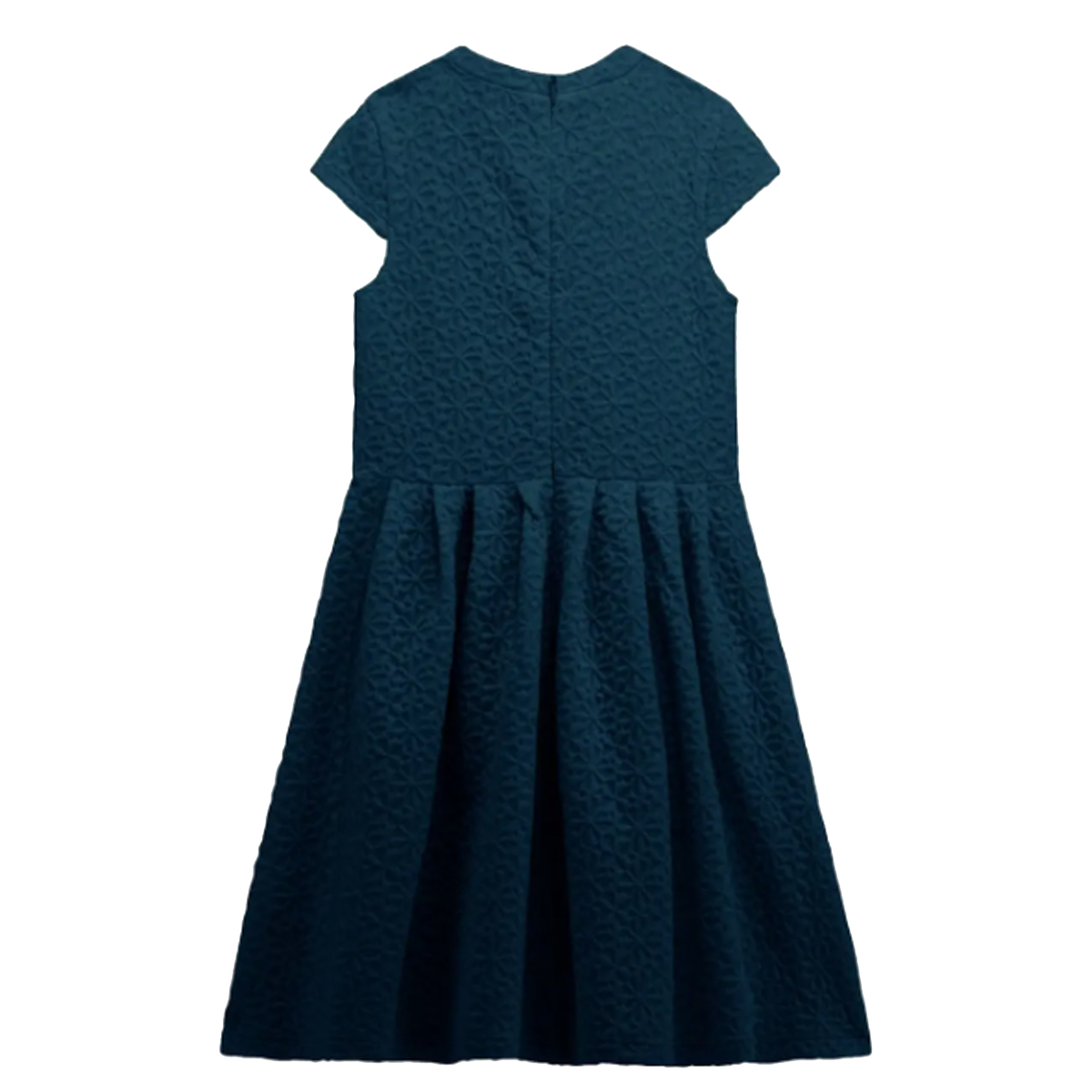 This EMBOSSED JERSEY SS SKATER DRES dress by GUESS is a sophisticated example of modern garment construction. The skater silhouette provides a balanced volume, featuring a fitted bodice and a structured, pleated skirt that falls gracefully. The cap sleeves and round neckline create a clean profile, complemented by a discreet back zipper closure.