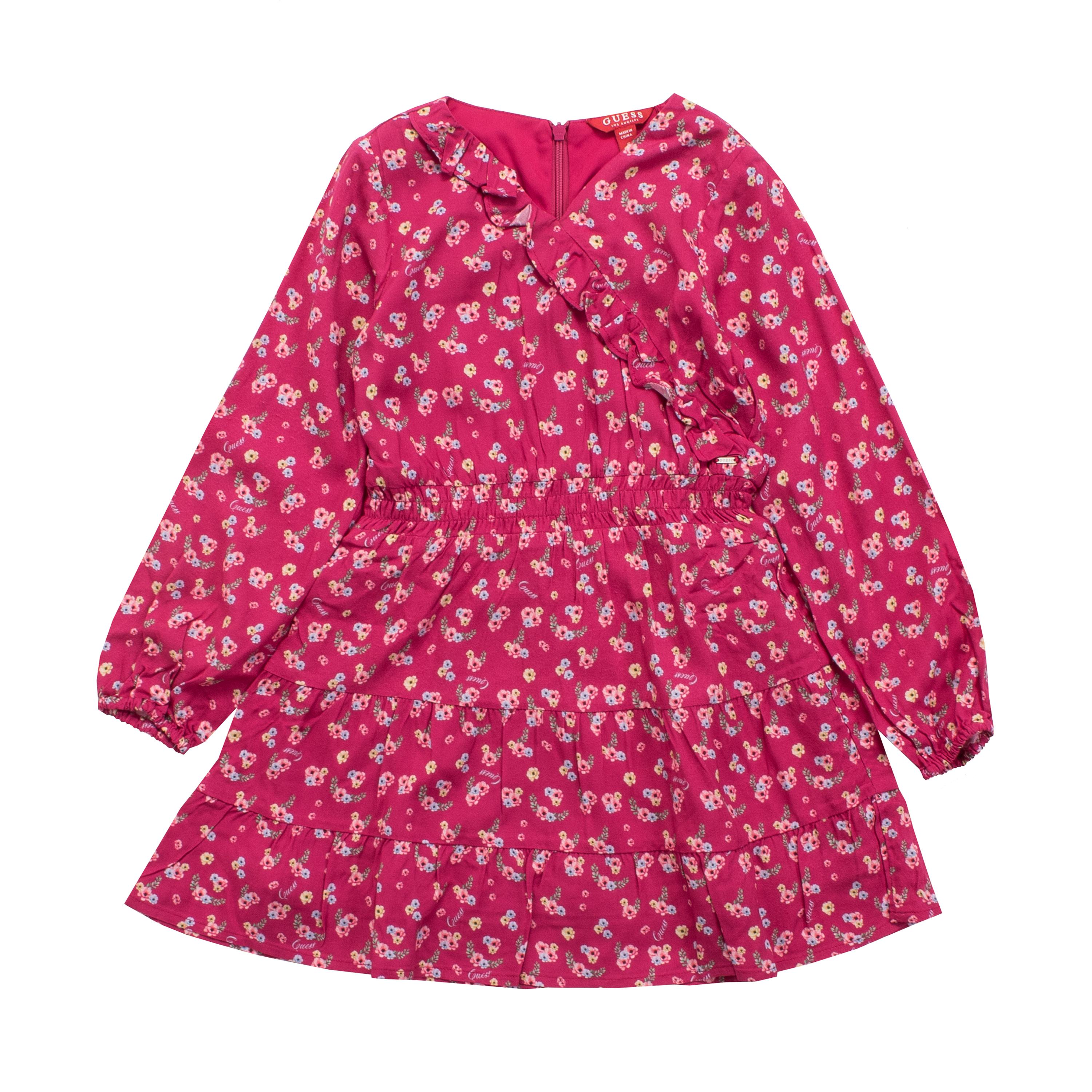 LONG DRESS, FOR GIRLS, V-NECK, LONG SLEEVES, FLORAL PATTERN, MULTICOLOR, PRINTED LOGO, BUTTON CLOSURE