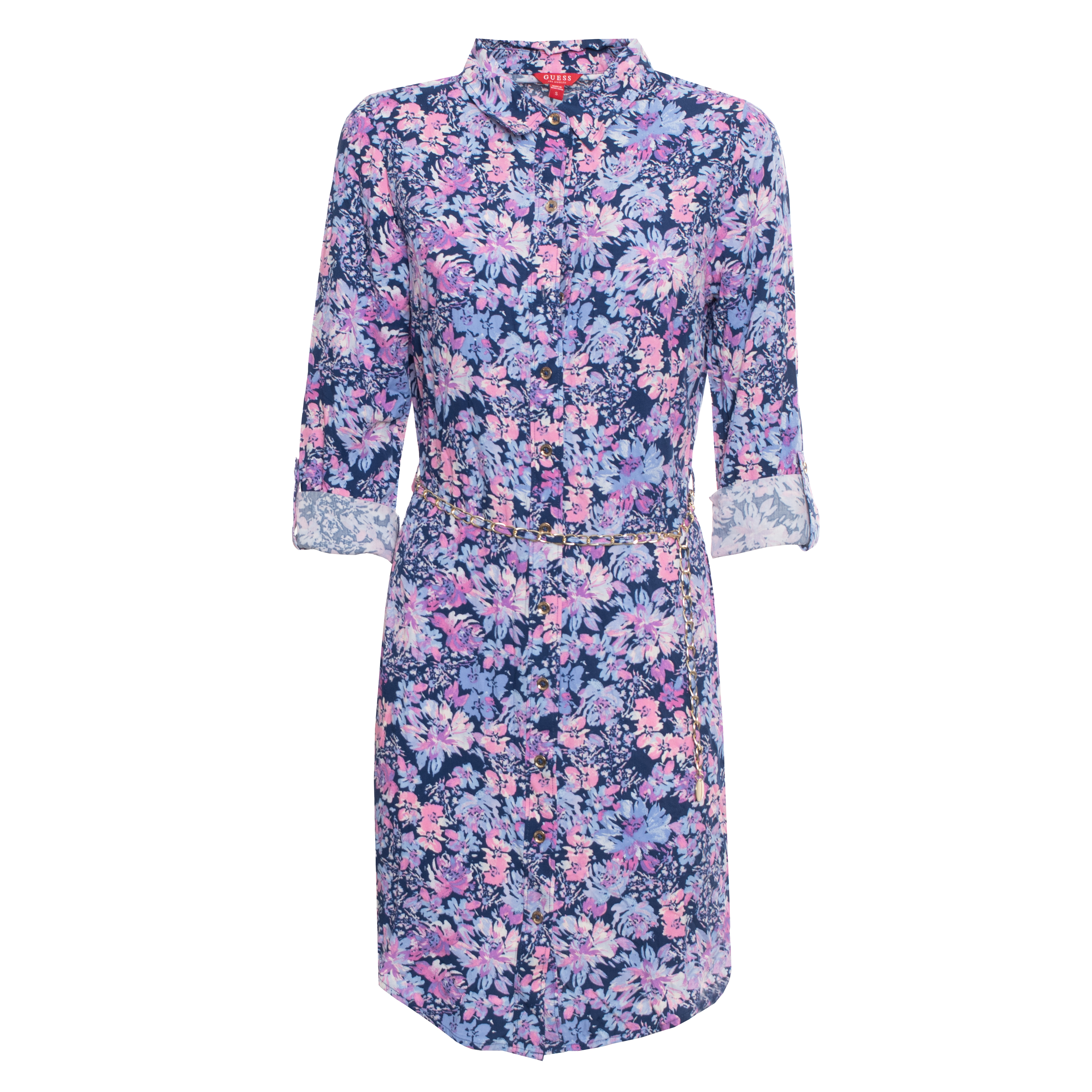 SHORT DRESS, FOR WOMEN, LONG SLEEVES, PATTERNED, MULTICOLOR, WITH LOGO, BUTTON CLOSURE, WITH BELT