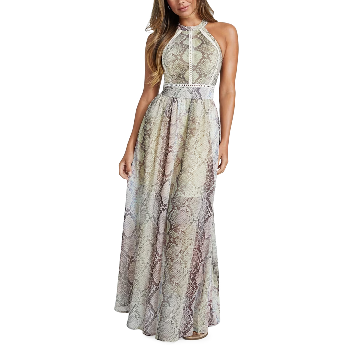 LONG DRESS, FOR WOMEN, MANDARIN COLLAR, MULTICOLOR, WITH LOGO, ZIP CLOSURE
