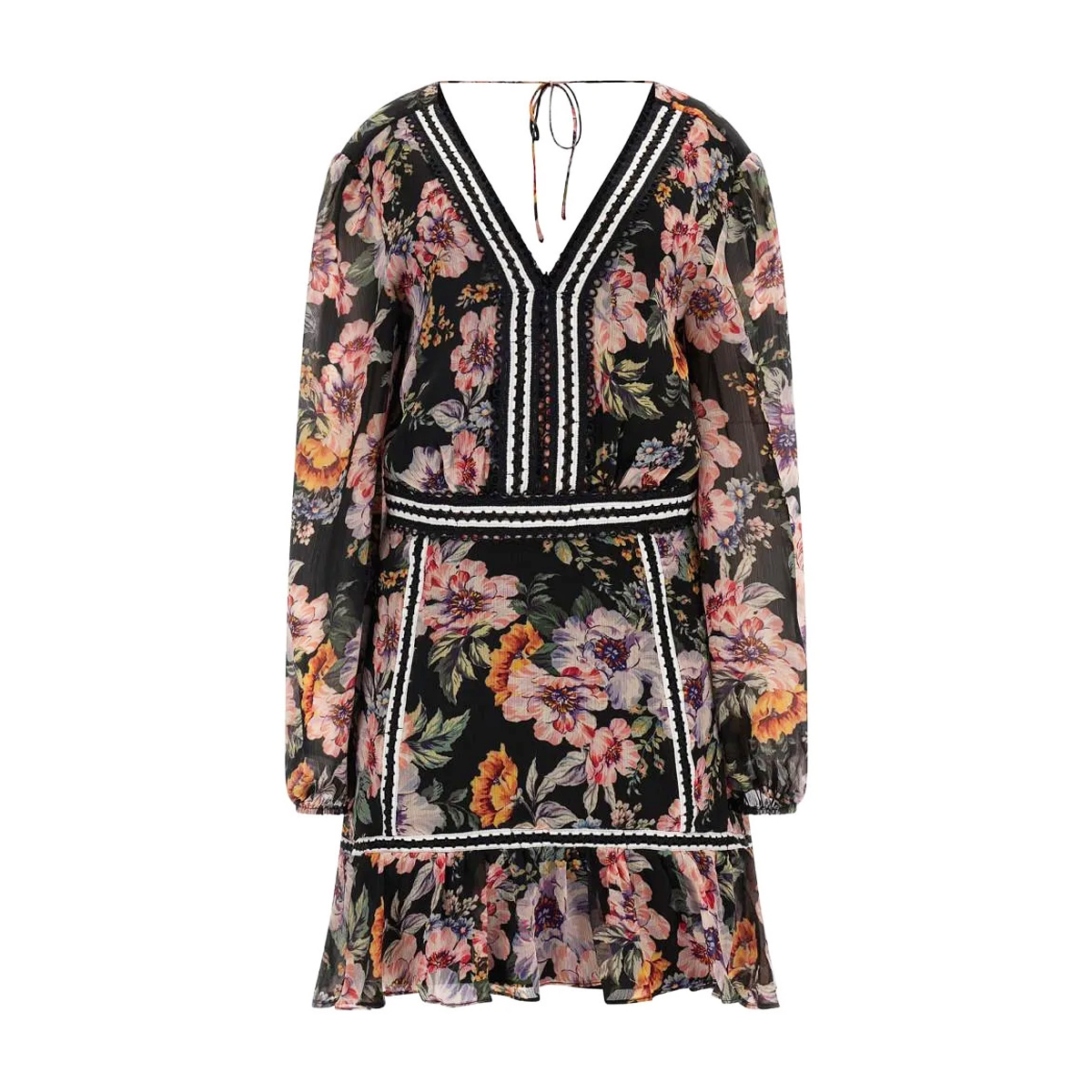 SHORT DRESS, FOR WOMEN, DEEP NECKLINE, LONG SLEEVES, MULTICOLOR, WITH LOGO, ZIP CLOSURE