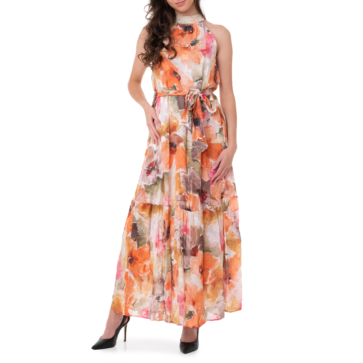 DRESS, FOR WOMEN, ARMHOLES, FLORAL PATTERN, WITH LOGO, BUTTON CLOSURE, WITH BELT