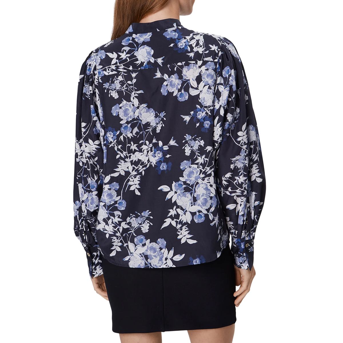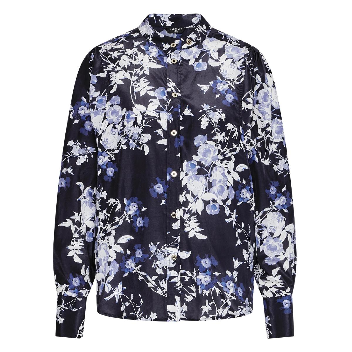 BLOUSE, FOR WOMEN, MANDARIN COLLAR, LONG SLEEVES, FLORAL PATTERN, WITH LOGO, BUTTONS CLOSURE