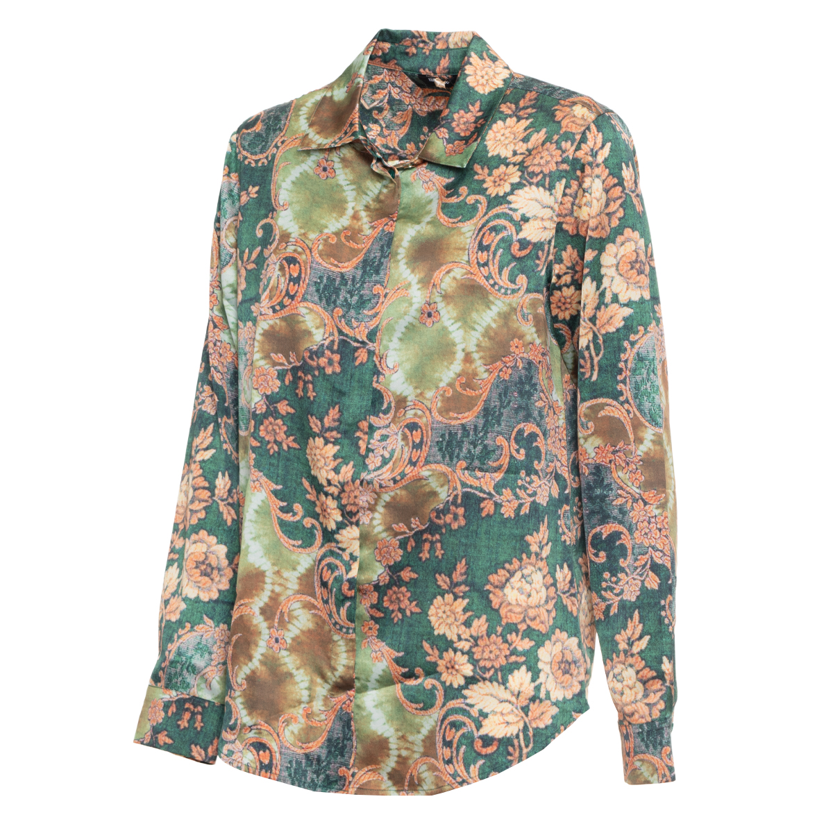 FLORAL SHIRT, FOR WOMEN, LONG SLEEVES, WITH LOGO, BUTTONS CLOSURE