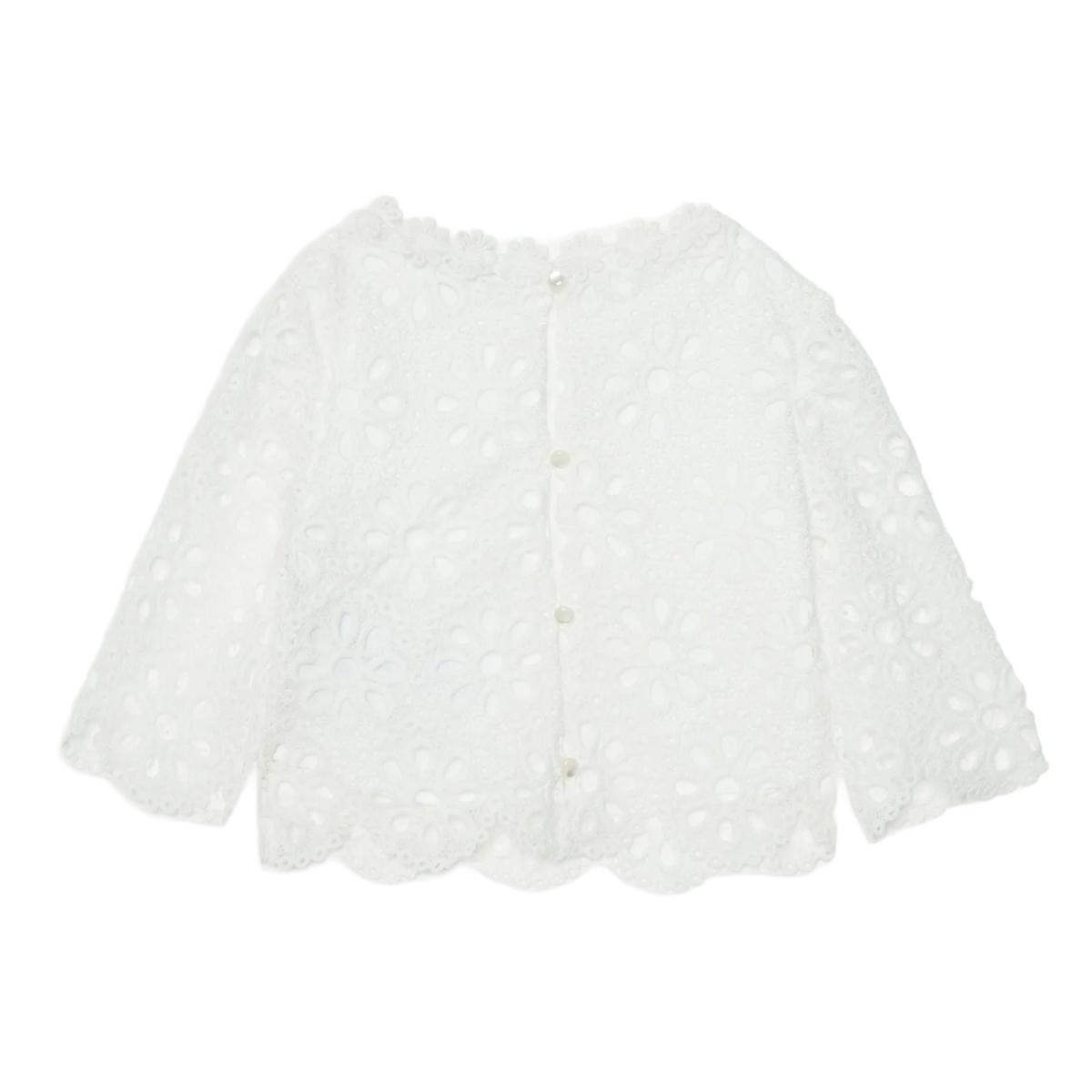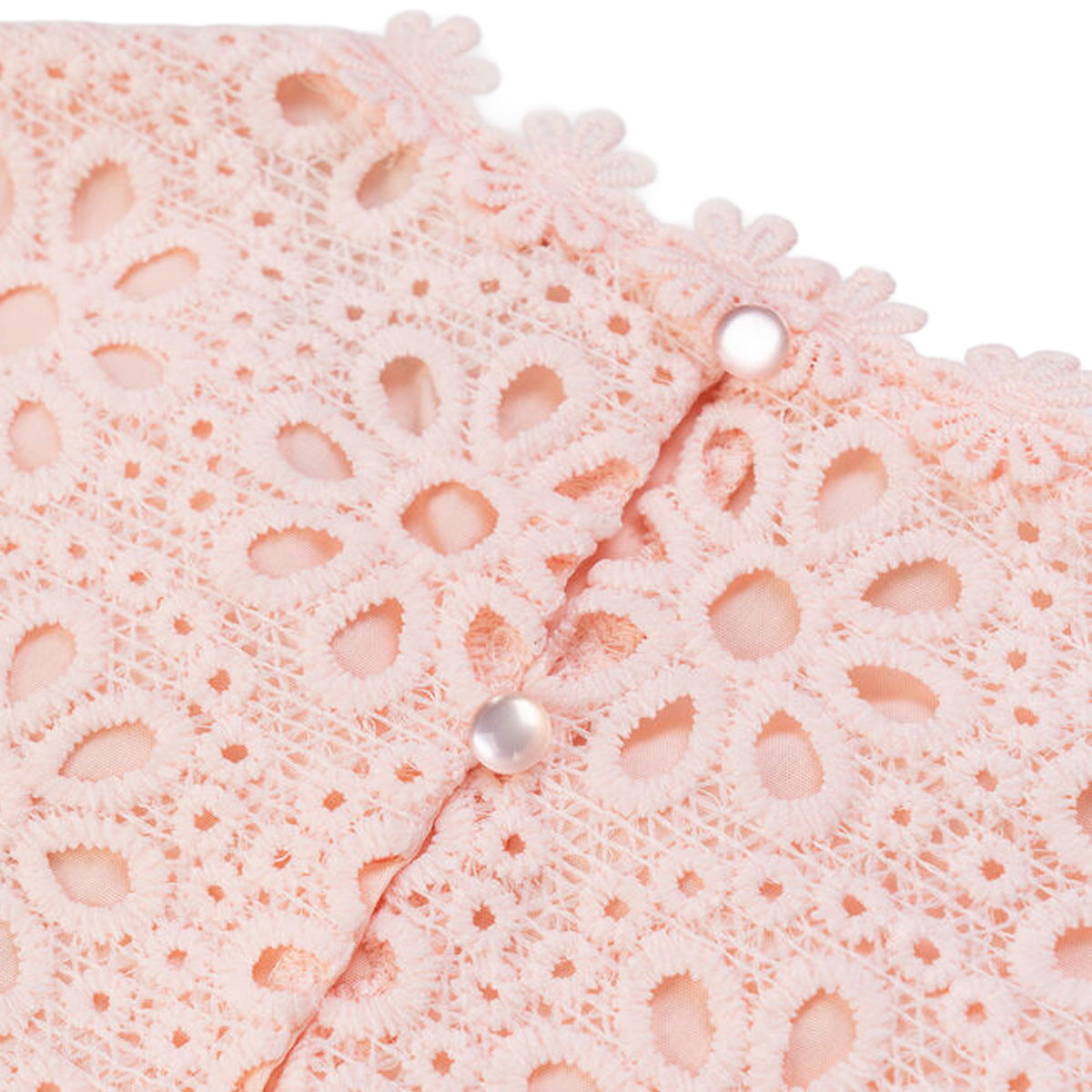 The 100% polyester fabric offers significant advantages in terms of durability and structural integrity. This material is specifically chosen for its ability to retain the crisp definition of the lace patterns after multiple washes. The lightweight nature of the textile ensures a fluid drape, while the functional button-down back closure allows for an easy fit without disrupting the complex front paneling.