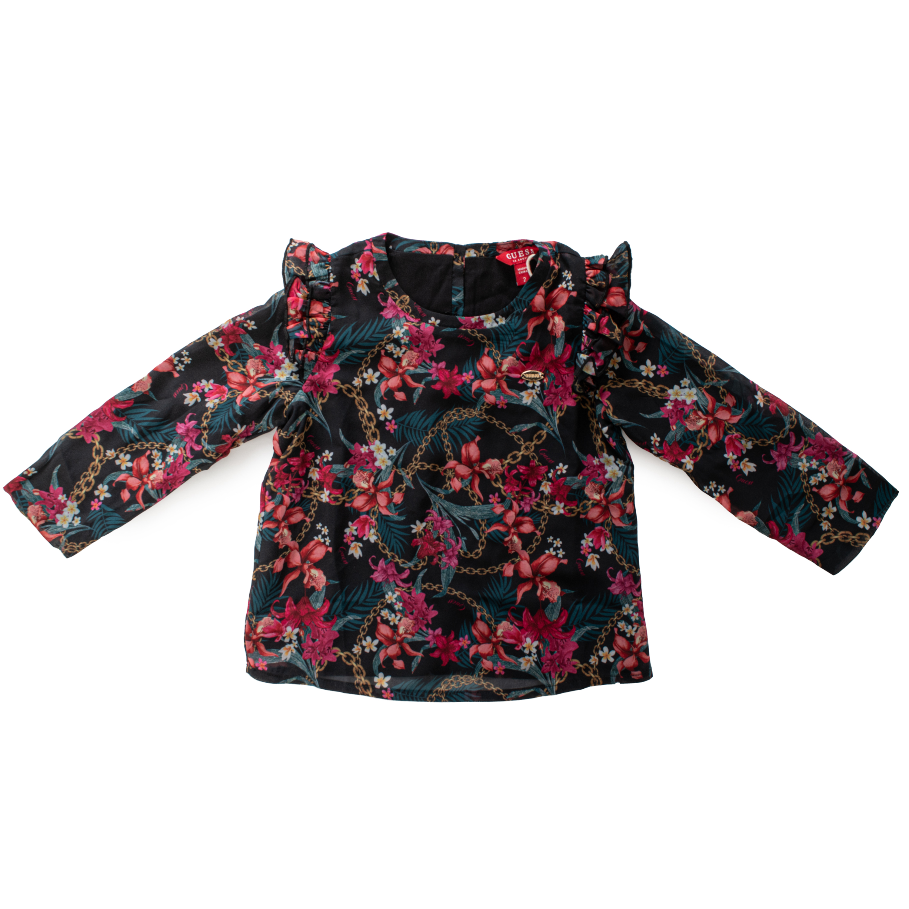 BLOUSE, FOR GIRLS, ROUNDNECK, LONG SLEEVES, FLORAL PATTERN, MULTICOLOR, EMBROIDERED LOGO
