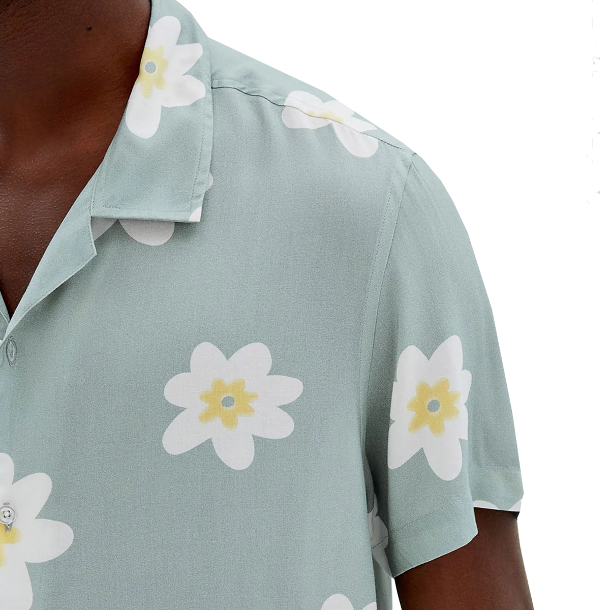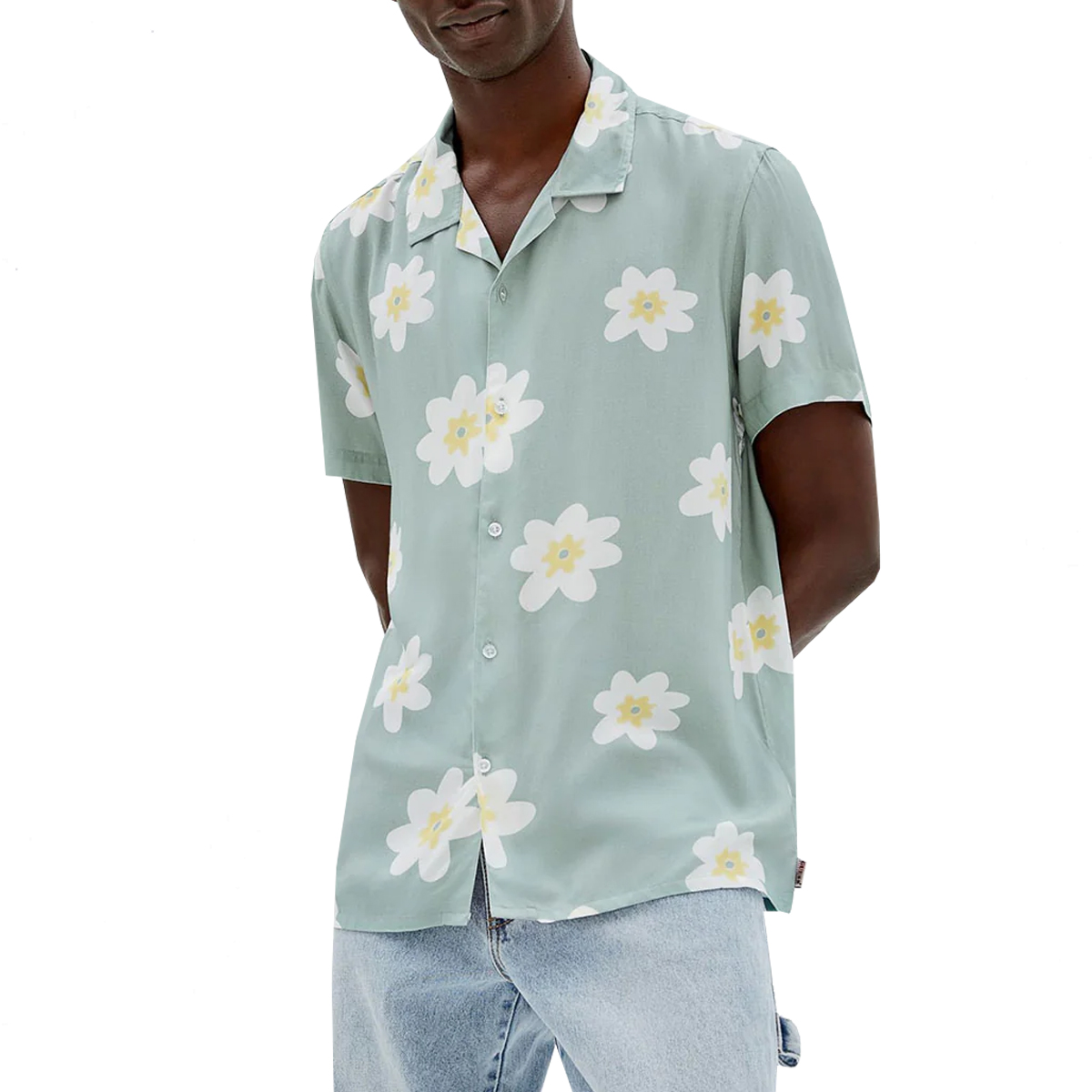 FLORAL SHIRT, FOR MEN, BASIC COLLAR, SHORT SLEEVES, PATTERNED, MULTICOLOR, WITH LOGO, BUTTONS CLOSURE