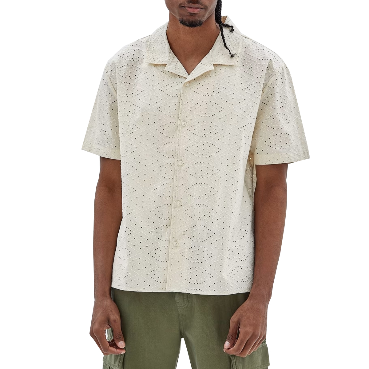 LACE SHIRT, FOR MEN, BASIC COLLAR, SHORT SLEEVES, SOLID COLOUR, WITH LOGO, BUTTONS CLOSURE