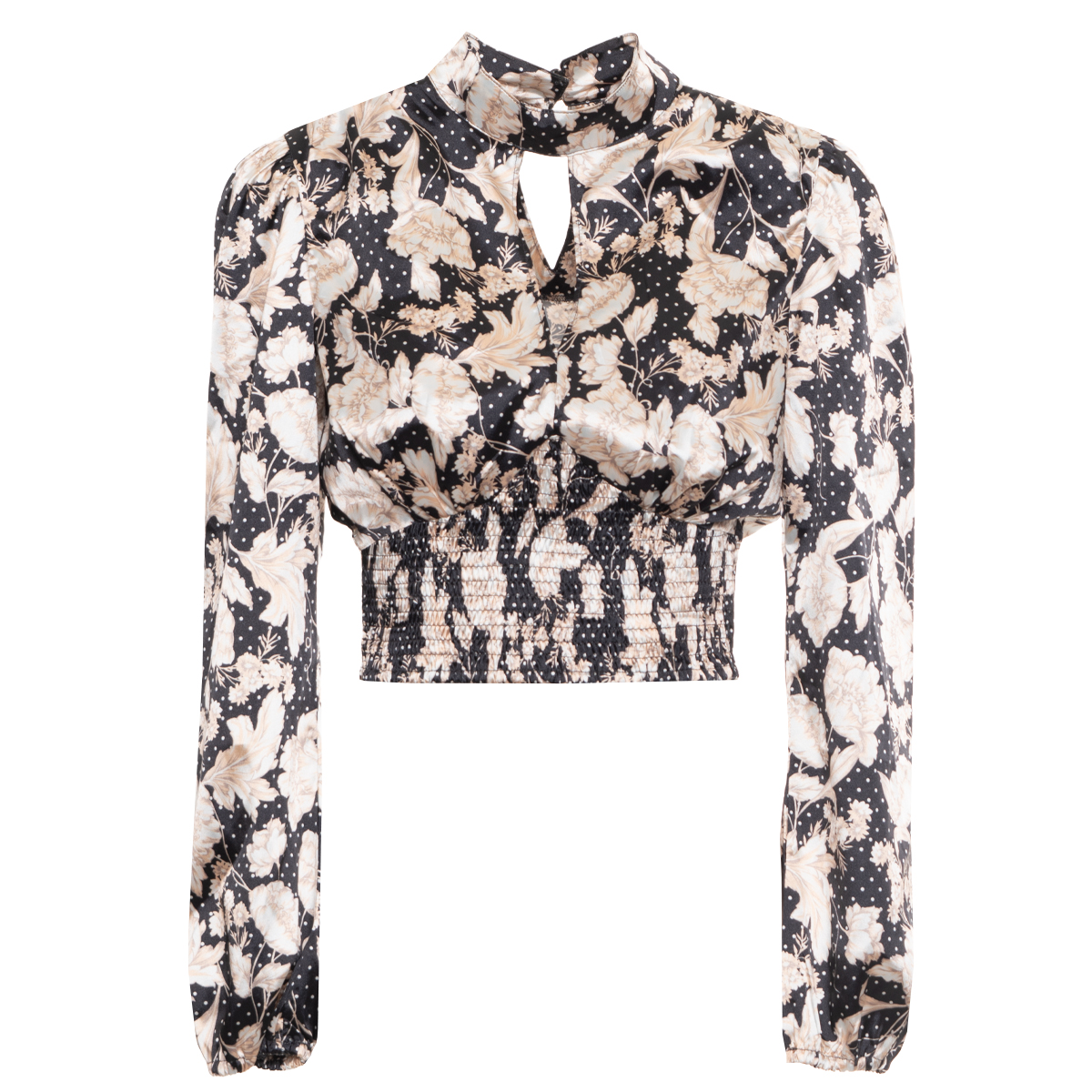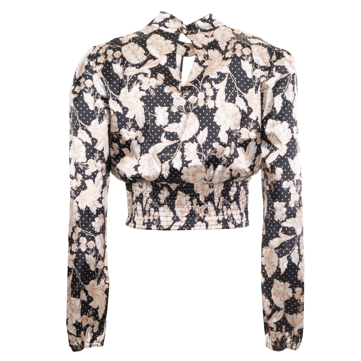 FLORAL SHIRT, FOR WOMEN, ROUNDNECK, LONG SLEEVES, WITH LOGO, BUTTONS CLOSURE