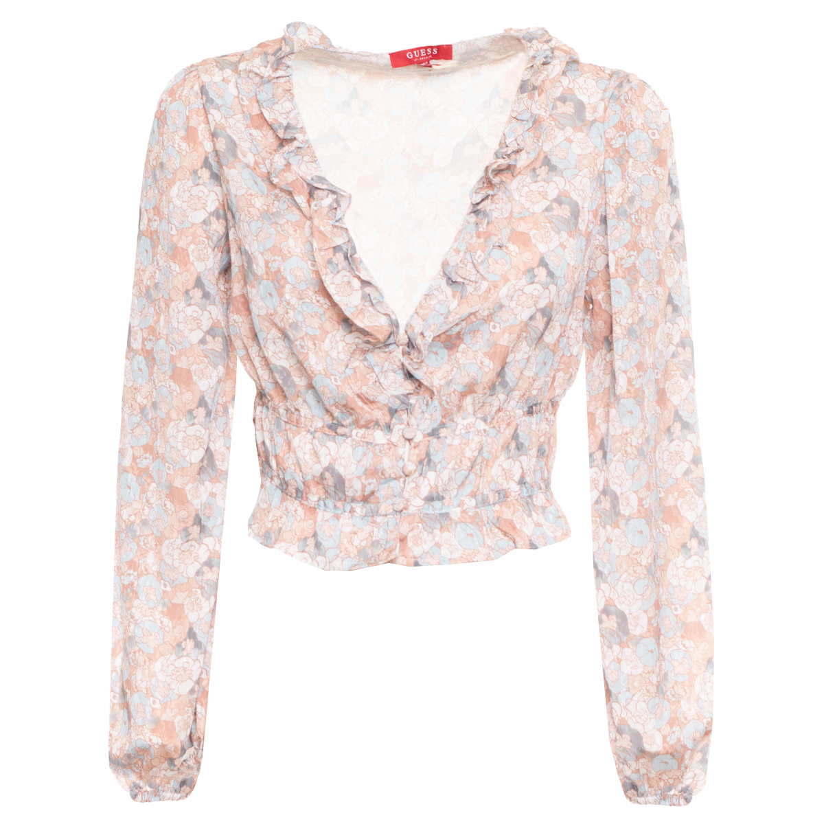BLOUSE, FOR WOMEN, LONG SLEEVES, PATTERNED, WITH LOGO, BUTTONS CLOSURE