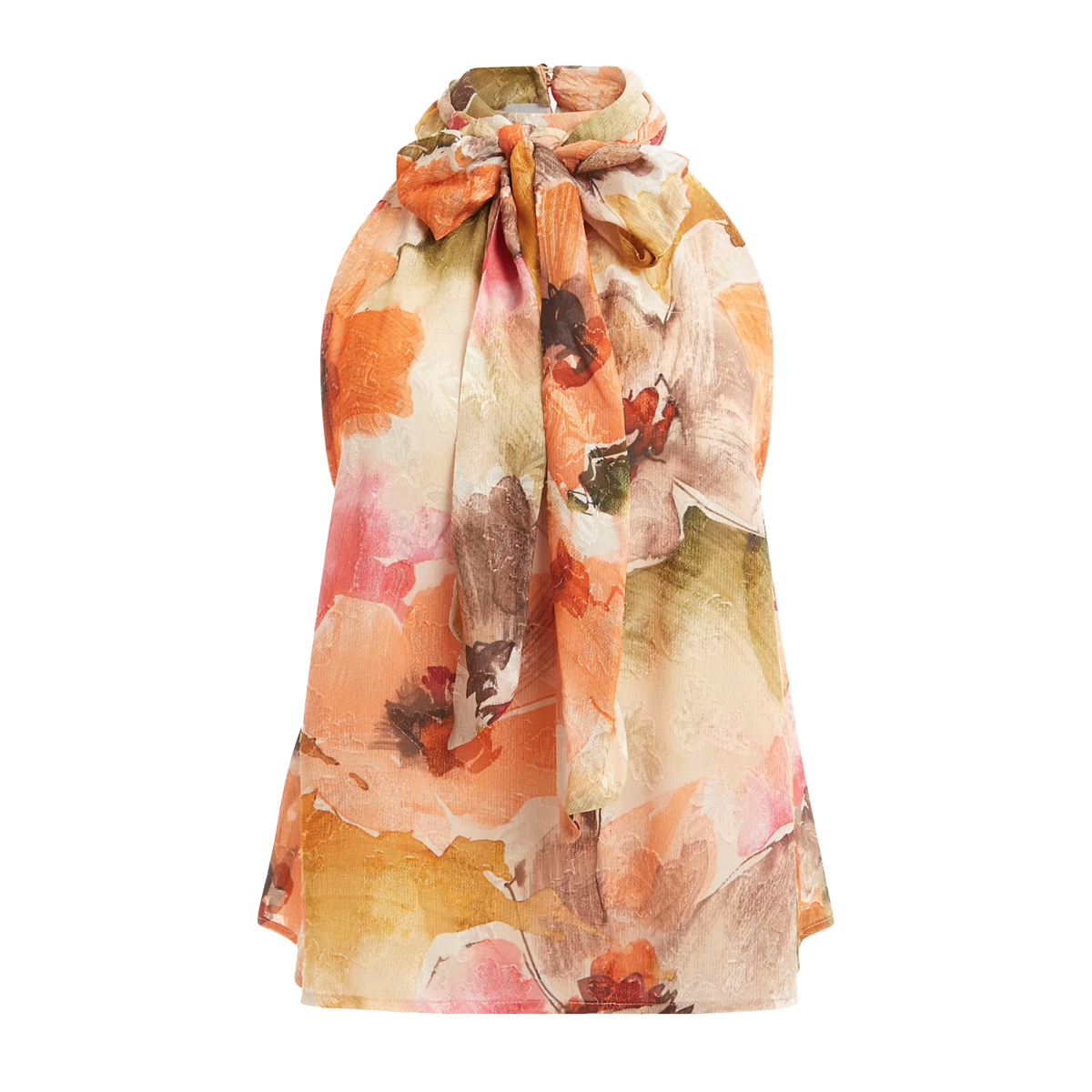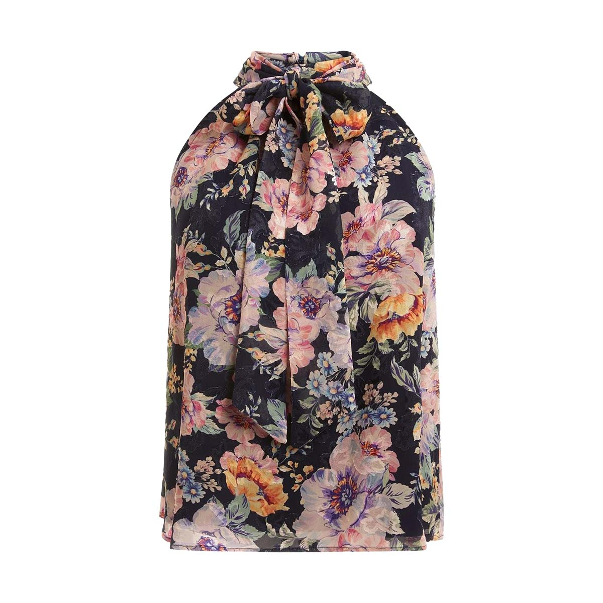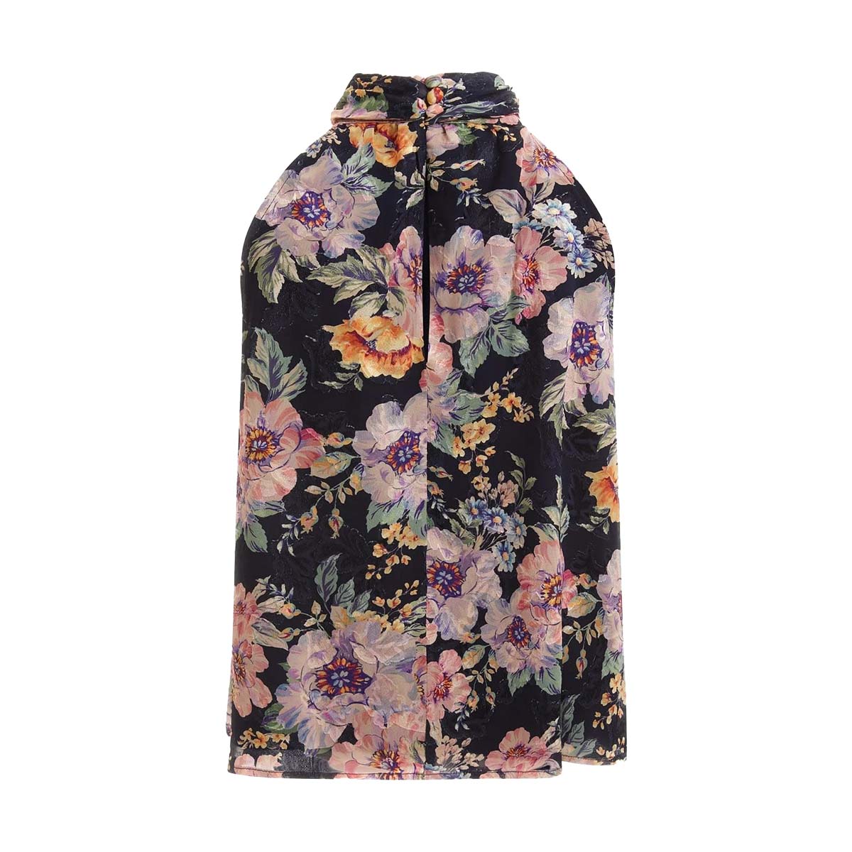 BLOUSE, FOR WOMEN, ROUNDNECK, SLEEVELESS, FLORAL PATTERN, PATTERNED, WITH LOGO