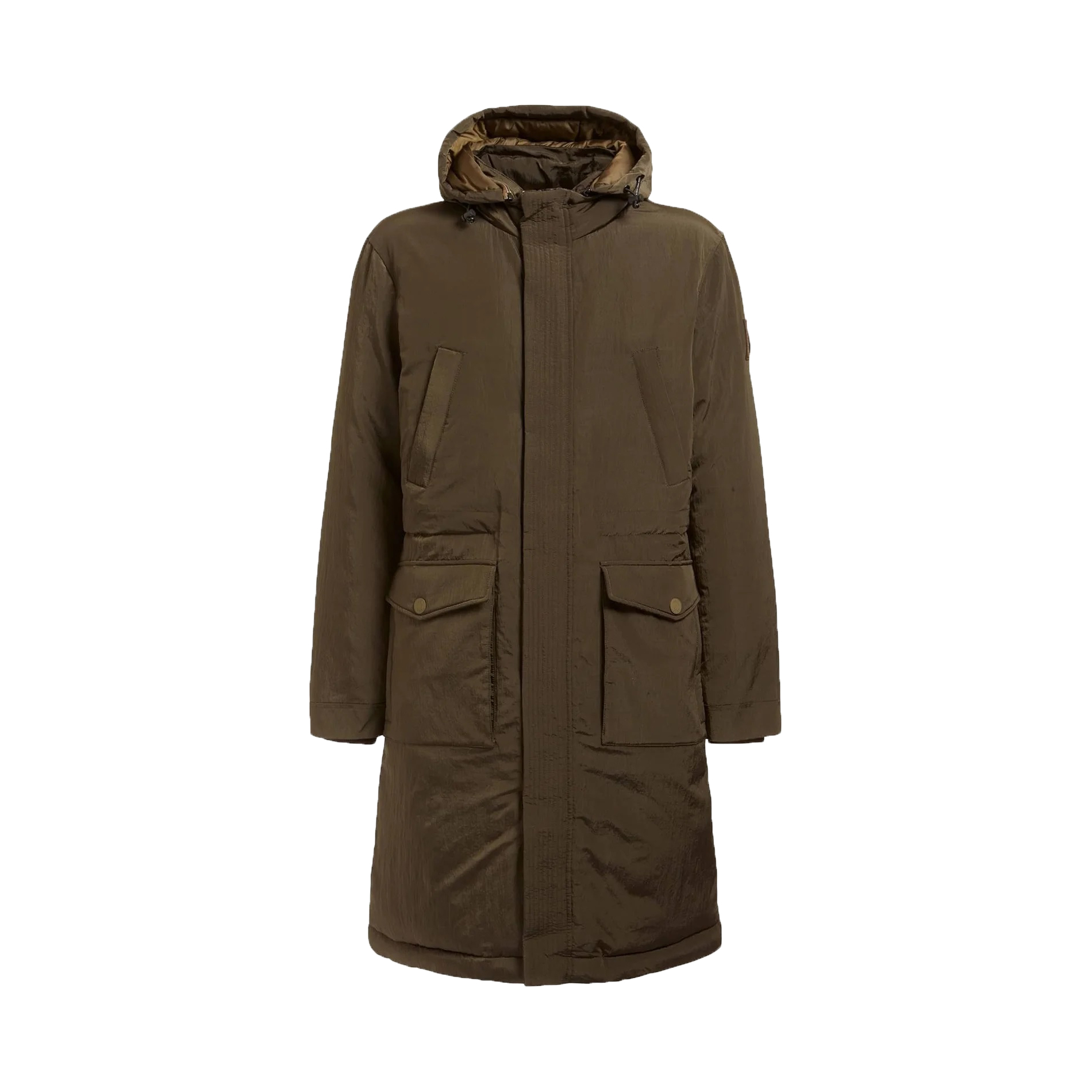 PARKA, PADDED JACKET, FOR MEN, POCKETS, DRAWSTRING HOOD, LONG SLEEVES, SOLID COLOUR, WITH LOGO, ZIP AND BUTTONS CLOSURE