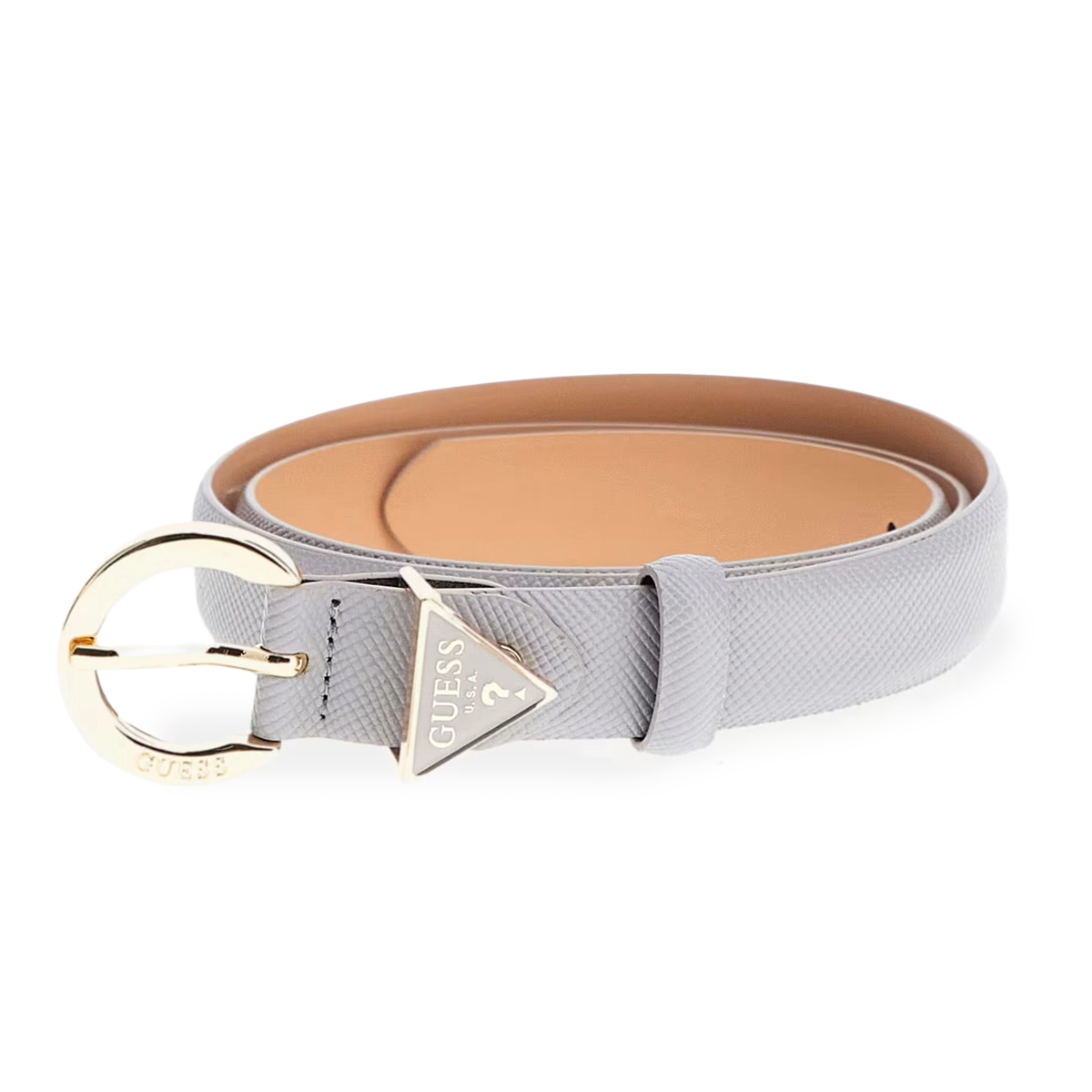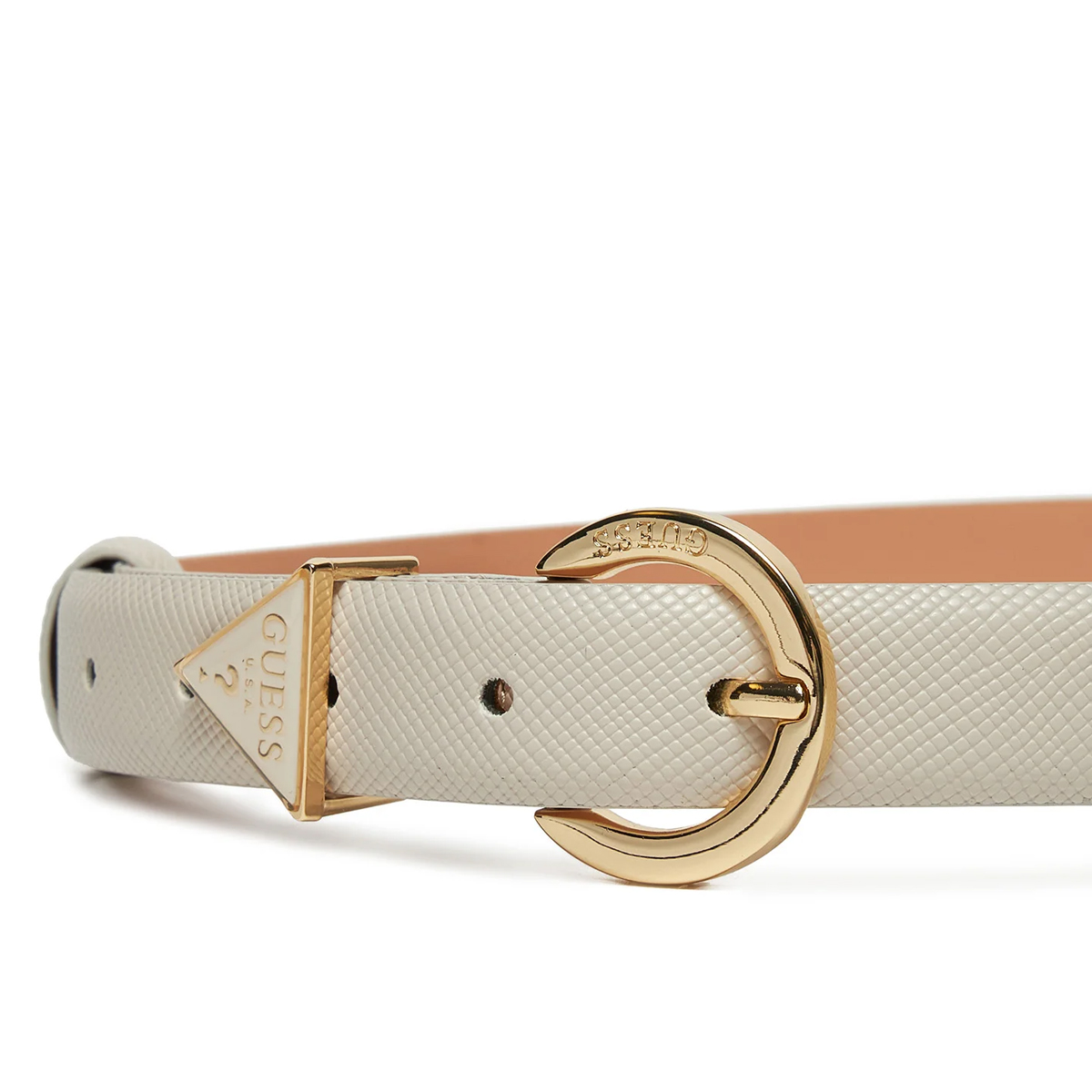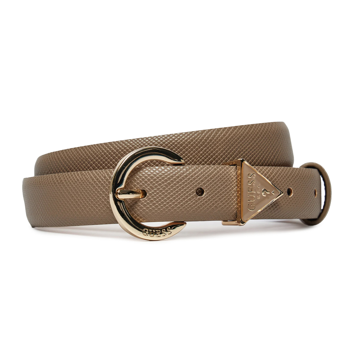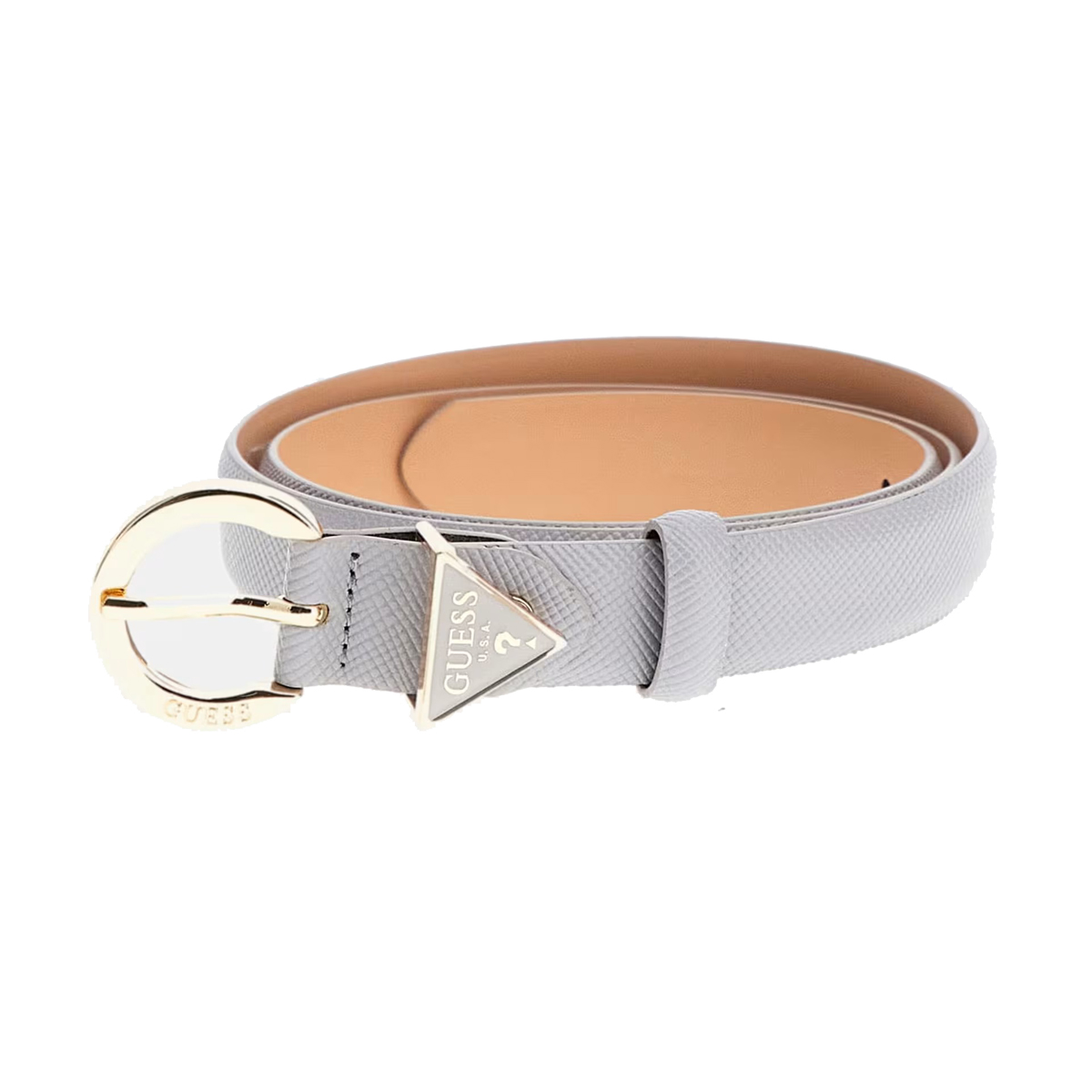 This NOELLE ADJ PANT BELT H25 belt by GUESS is a study in structural resilience and modern branding. The design features a circular pin buckle and a distinctive triangular logo plaque at the tip, creating a balanced visual flow along the strap. Its surface displays a cross-hatched texture that provides a sophisticated tactile experience while ensuring a non-slip grip when fastened through the loops.