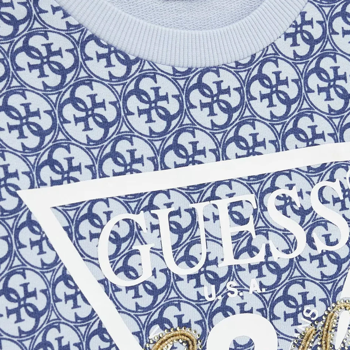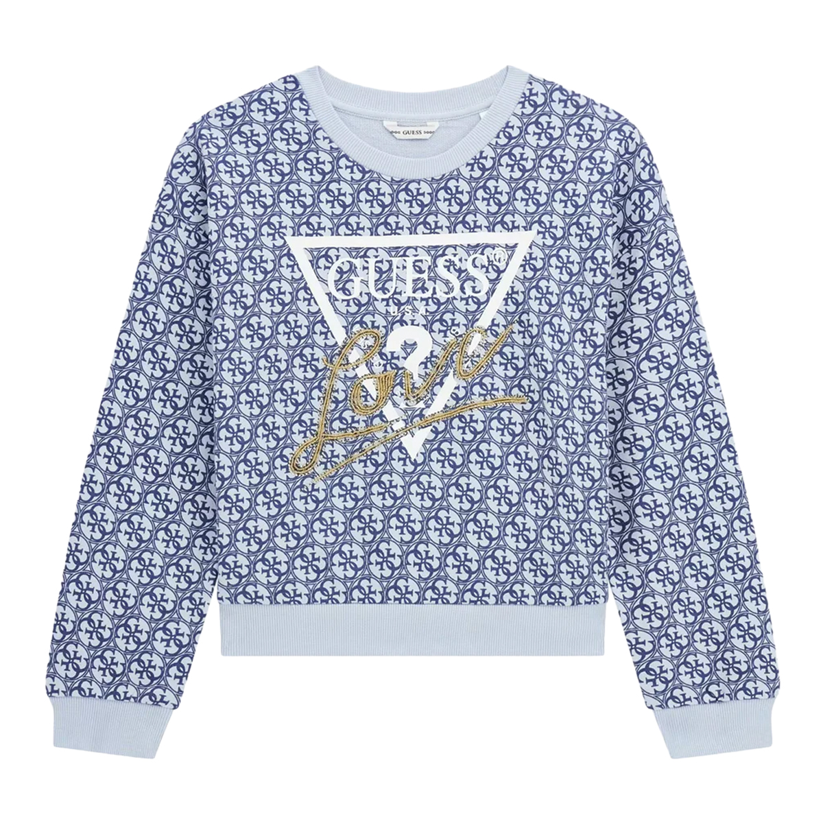 This sweatshirt LS ACTIVE TOP by GUESS is a striking example of expressive design merged with athletic-inspired comfort. The garment features an extensive heart pattern and a prominent glitter-accented logo on the chest, creating a vibrant visual identity that appeals to contemporary retail selections. The crew neck silhouette and long sleeves provide a classic foundation for the bold graphic elements, ensuring the piece remains a versatile staple in any commercial collection.