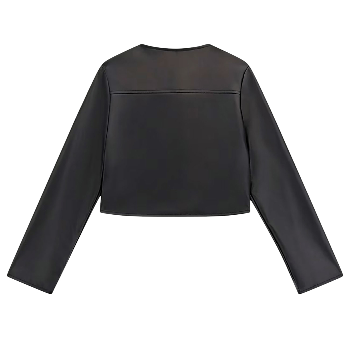 Crafted from 100% Polyurethane, the garment offers a leather-like texture that is both durable and easy to maintain, ensuring a long-lasting premium appearance. The long sleeves and clean-cut hem provide a sophisticated profile, while the chest-level welt pockets contribute to the balanced, symmetrical aesthetic of this high-quality piece.
