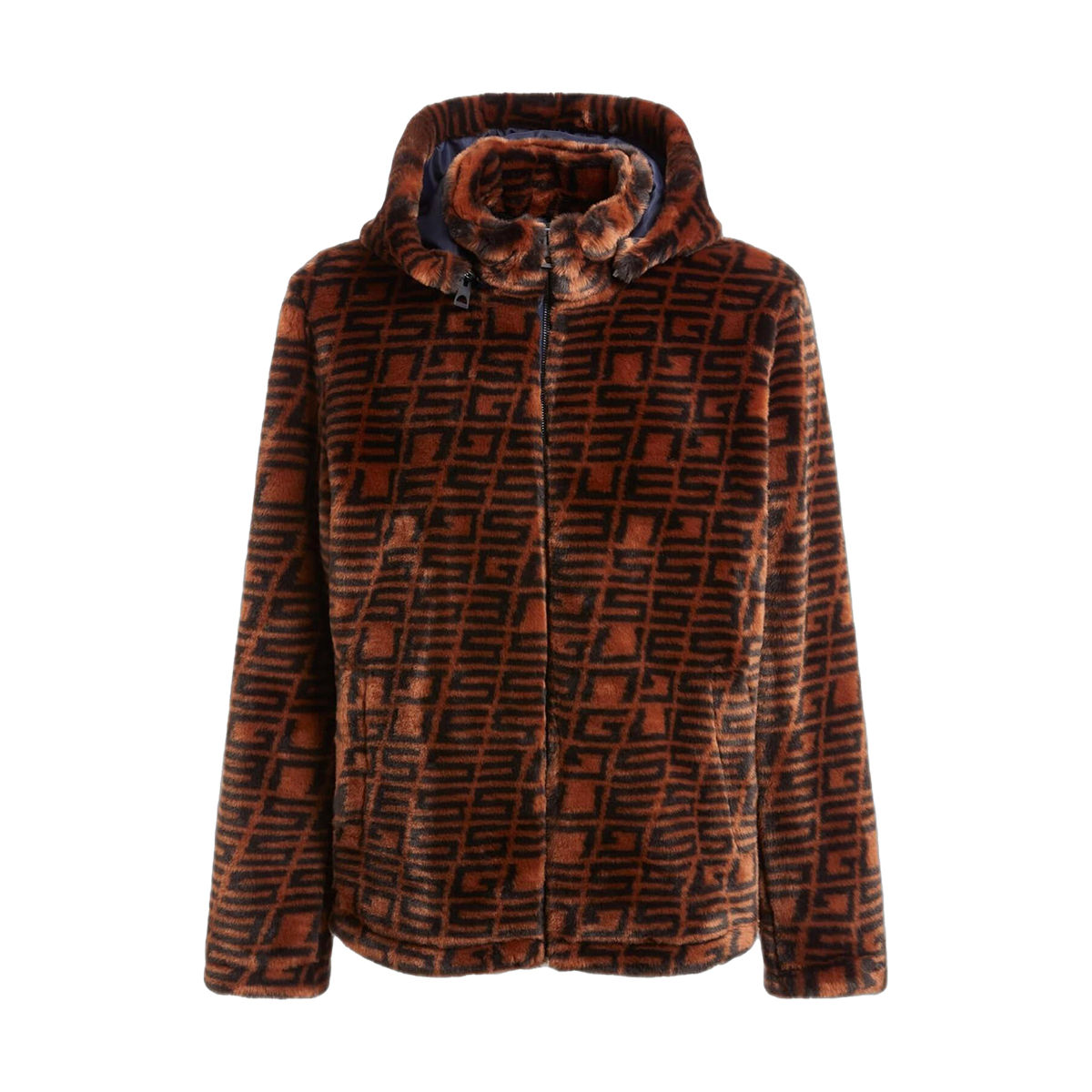 ECO-FUR, FOR MEN, WITH HOOD, BI-COLOR, WITH LOGO, ZIP CLOSURE