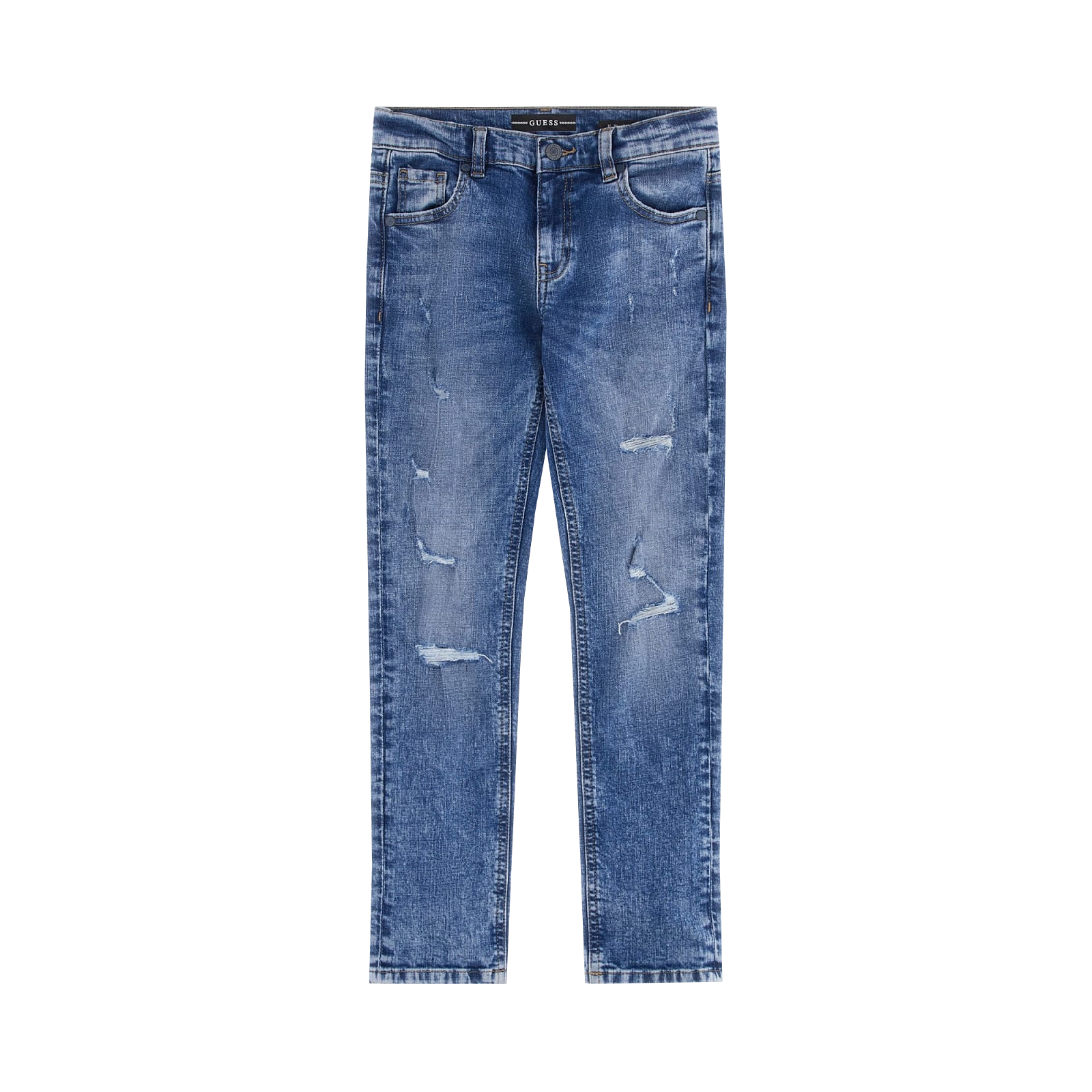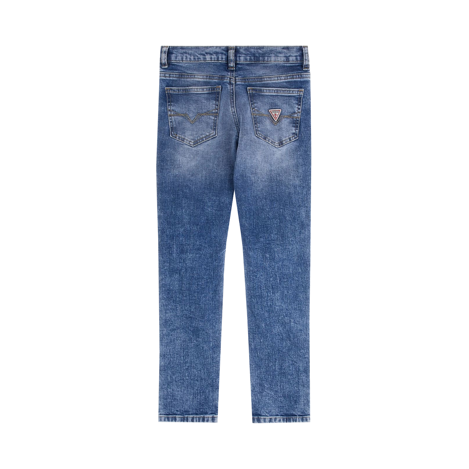 JEANS, FOR KIDS, FIVE POCKETS, SLIM FIT, SOLID COLOUR, WITH LOGO, ZIP AND BUTTONS CLOSURE