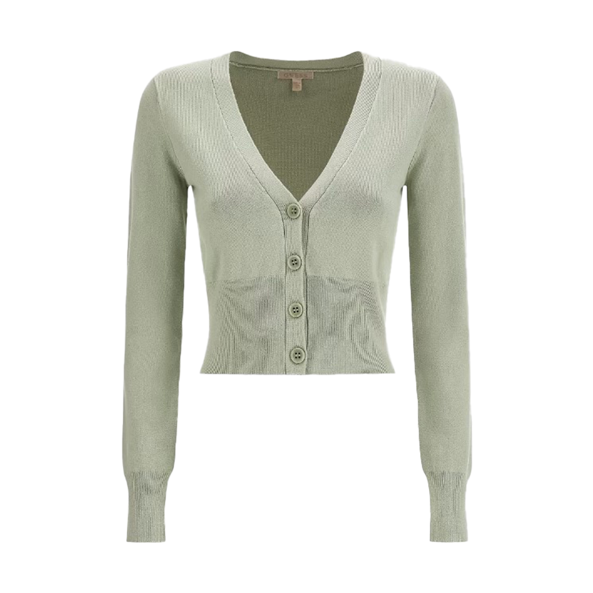 CARDIGAN, FOR WOMEN, V-NECK, LONG SLEEVES, SOLID COLOUR, WITH LOGO, WITH BUTTONS