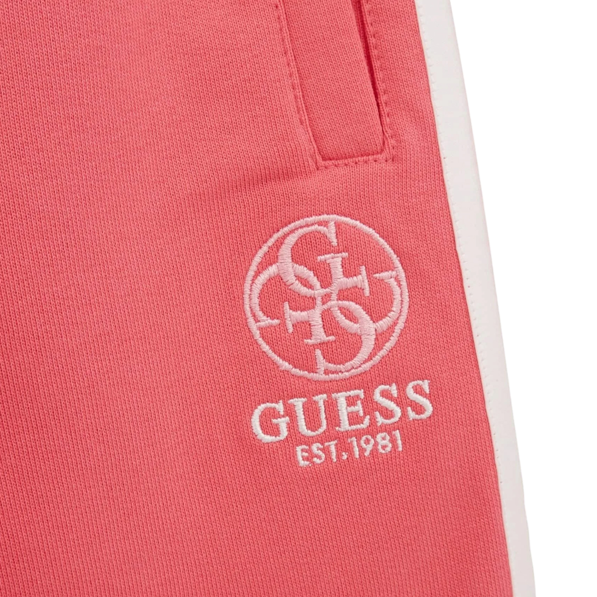 This PANTALONI ACTIVE PANTS by GUESS is a meticulously constructed garment designed with a focus on ease and structural clarity. The piece features a robust elasticated waistband equipped with a functional drawstring, allowing for a precise and secure fit. Vertical welt pockets are seamlessly integrated into the sides, while the contrasting lateral stripes provide a graphic rhythm that leads down to the elasticated ankle cuffs.