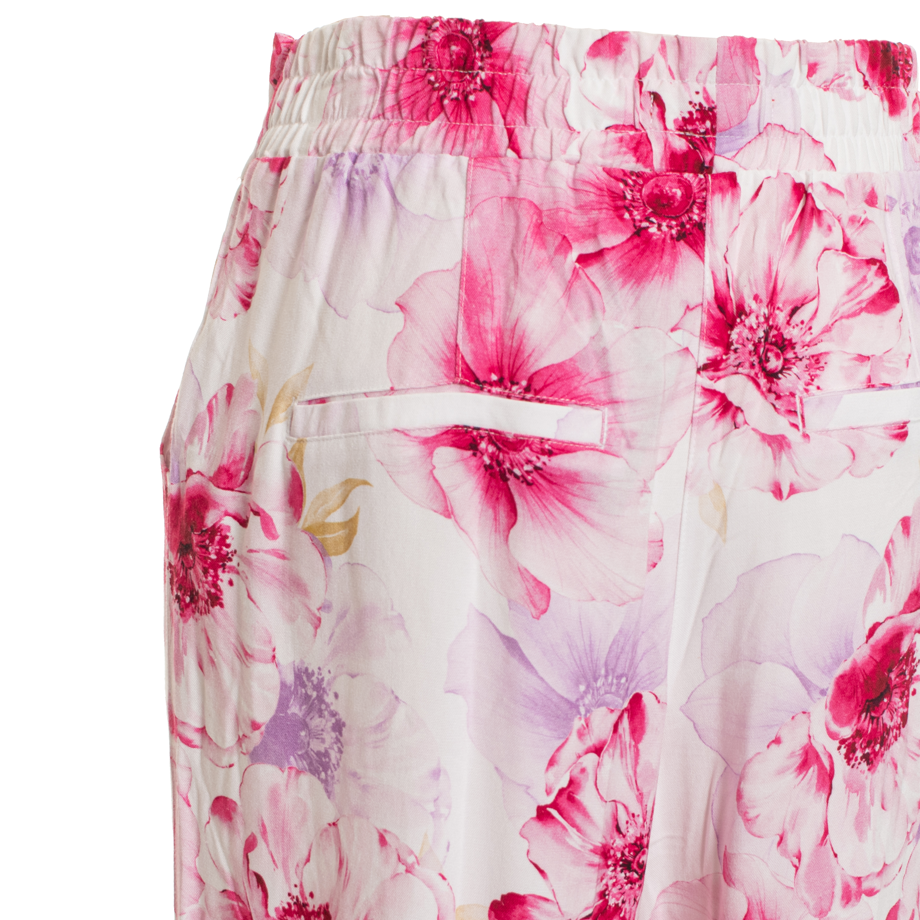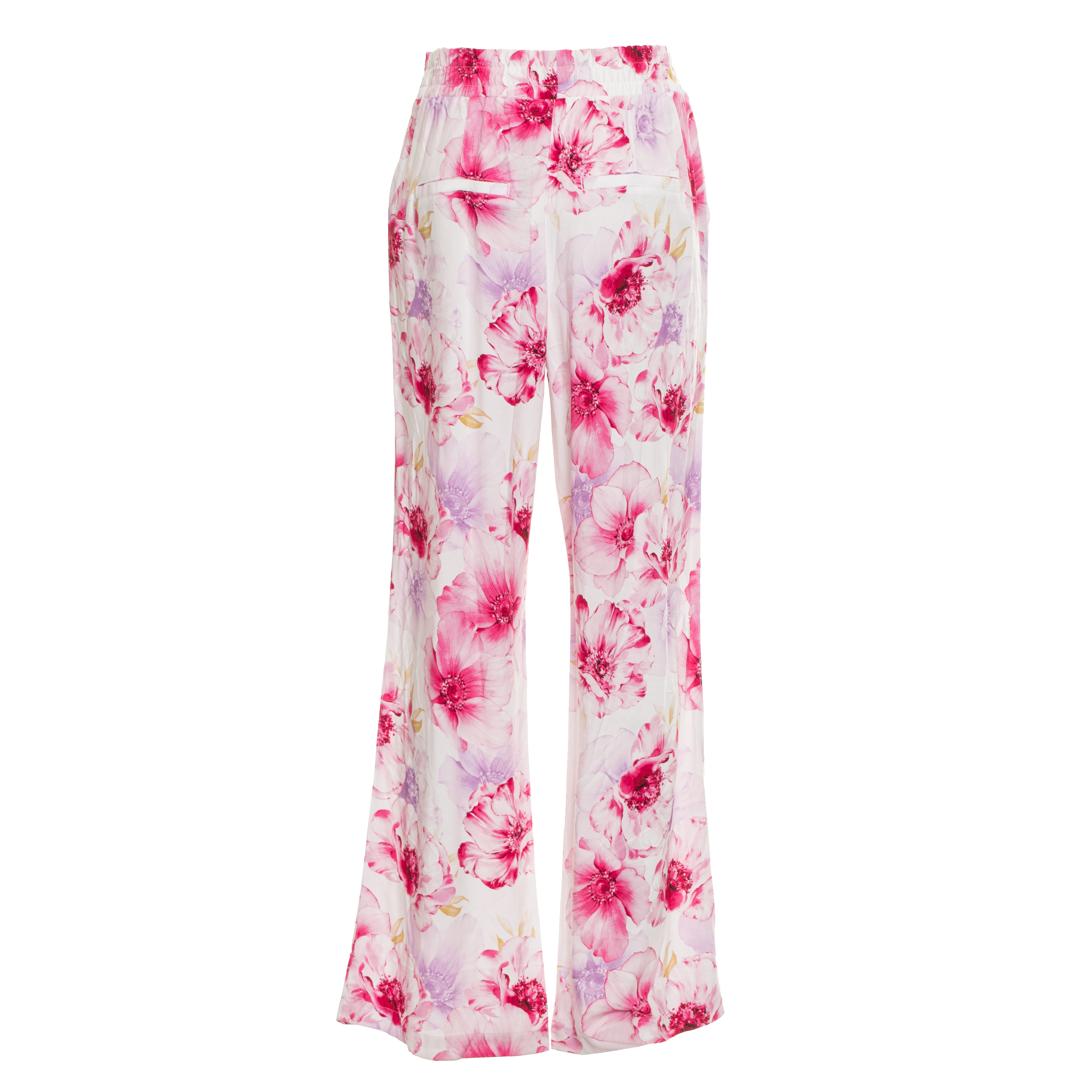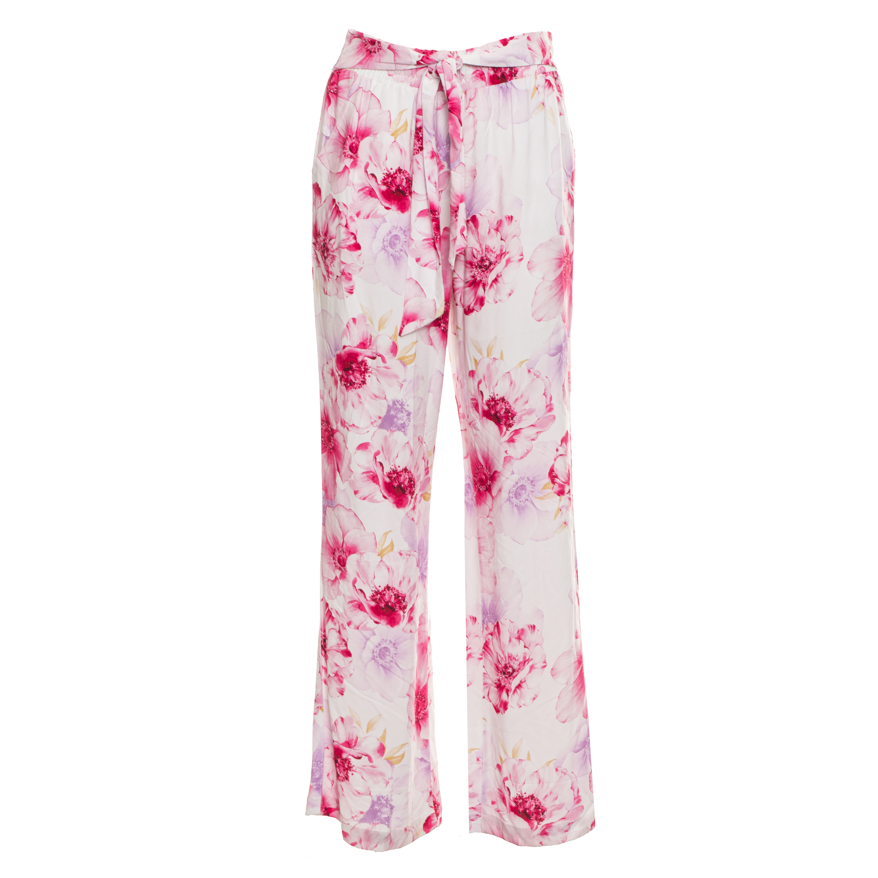 PALAZZO PANTS, FOR WOMEN, TWO POCKETS, FLORAL PATTERN, DRAWSTRING WAIST, WITH LOGO