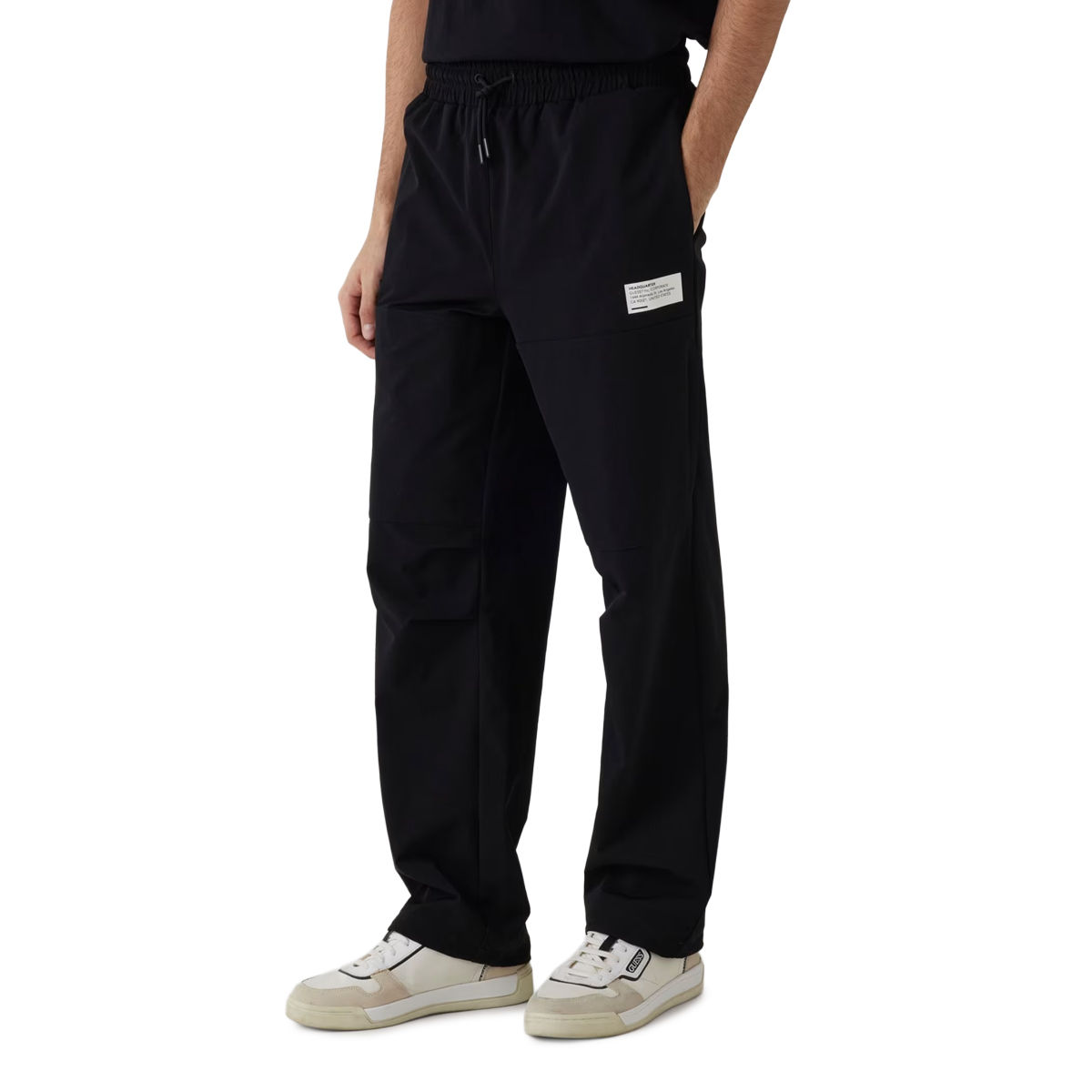 TROUSERS, FOR MEN, FOUR POCKETS, SOLID COLOUR, DRAWSTRING WAIST, WITH LOGO