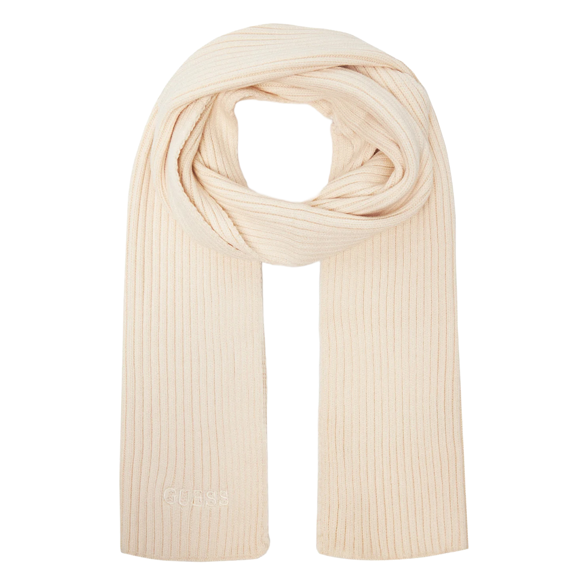 This scarf SCARF by GUESS is a refined addition to any retail collection, featuring a classic ribbed texture that adds depth to its minimalist silhouette. The elongated rectangular cut allows for versatile styling, while the embroidered GUESS branding at the hem provides a subtle touch of sophistication that retail clients appreciate.