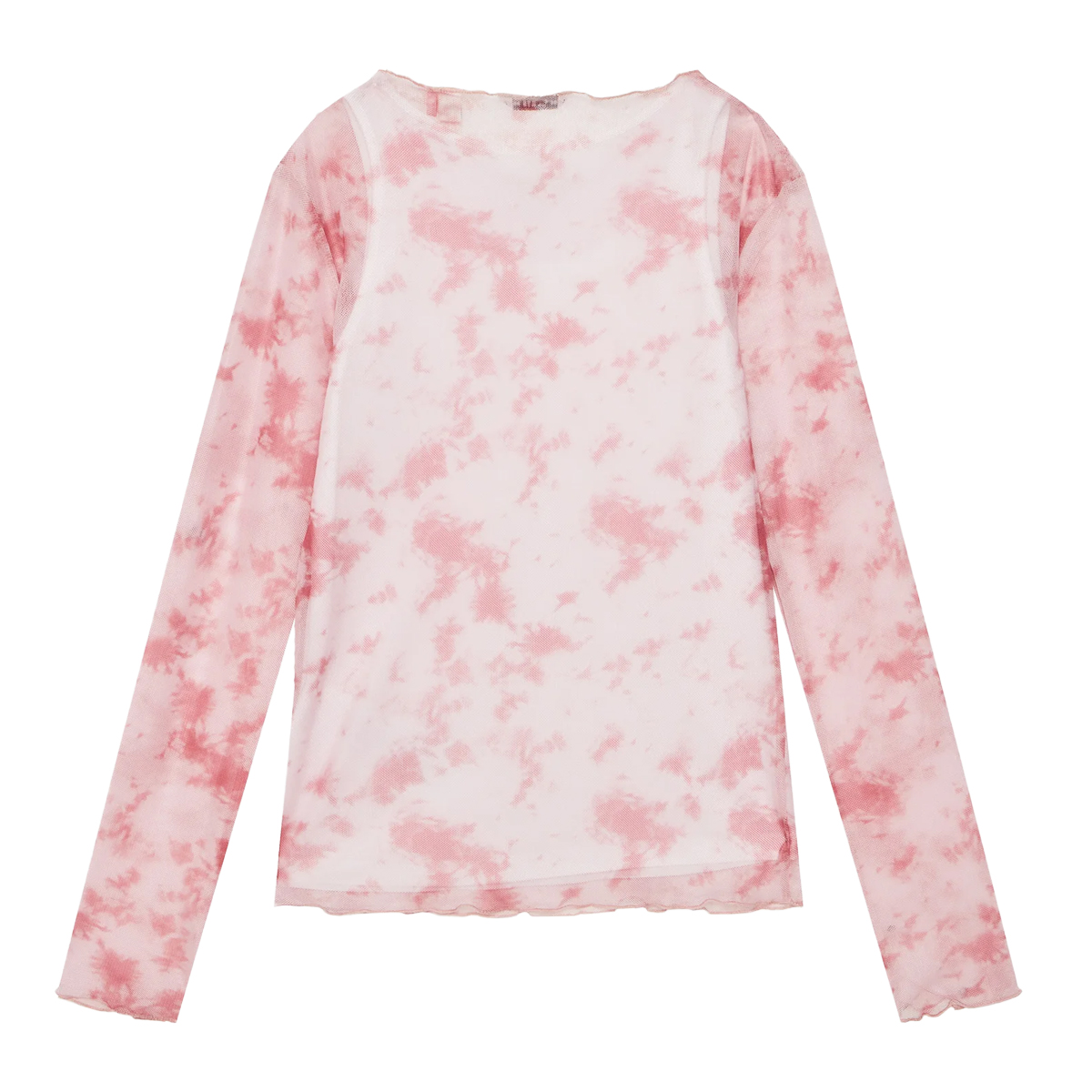This T SHIRT LS MESH T-SHIRT by GUESS is a sophisticated layering piece with a distinct ethereal quality. The long-sleeved construction features a delicate crew neckline and a subtly textured surface that creates a visual depth through its clouded pattern. The slim-fit design ensures a streamlined look that translates well into high-end retail environments.
