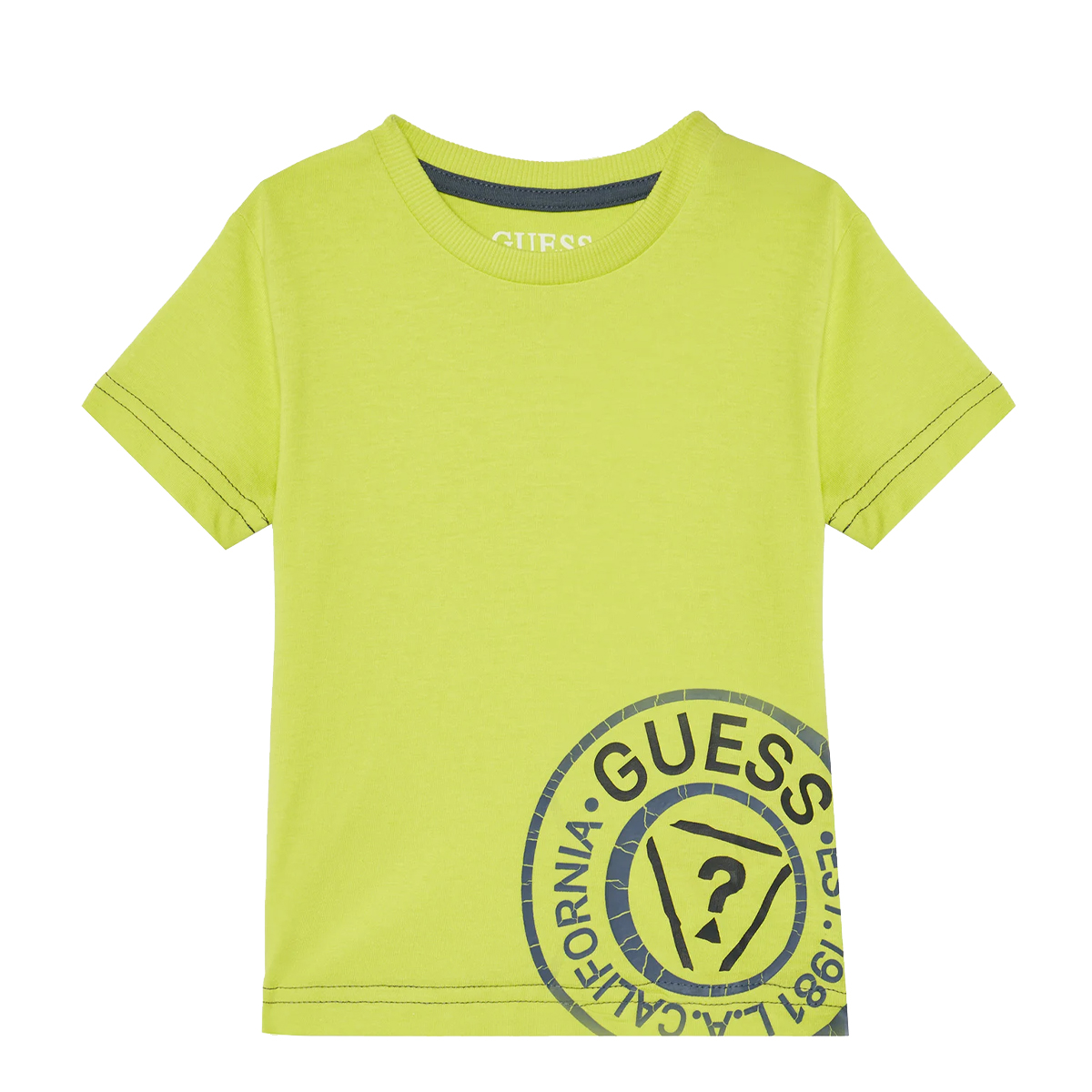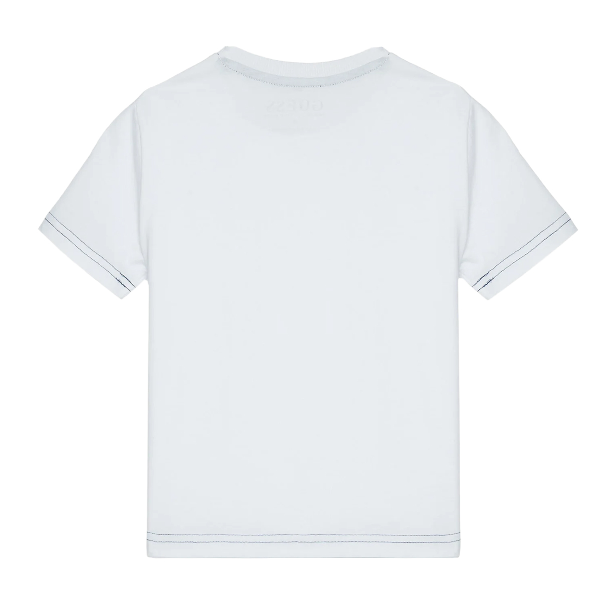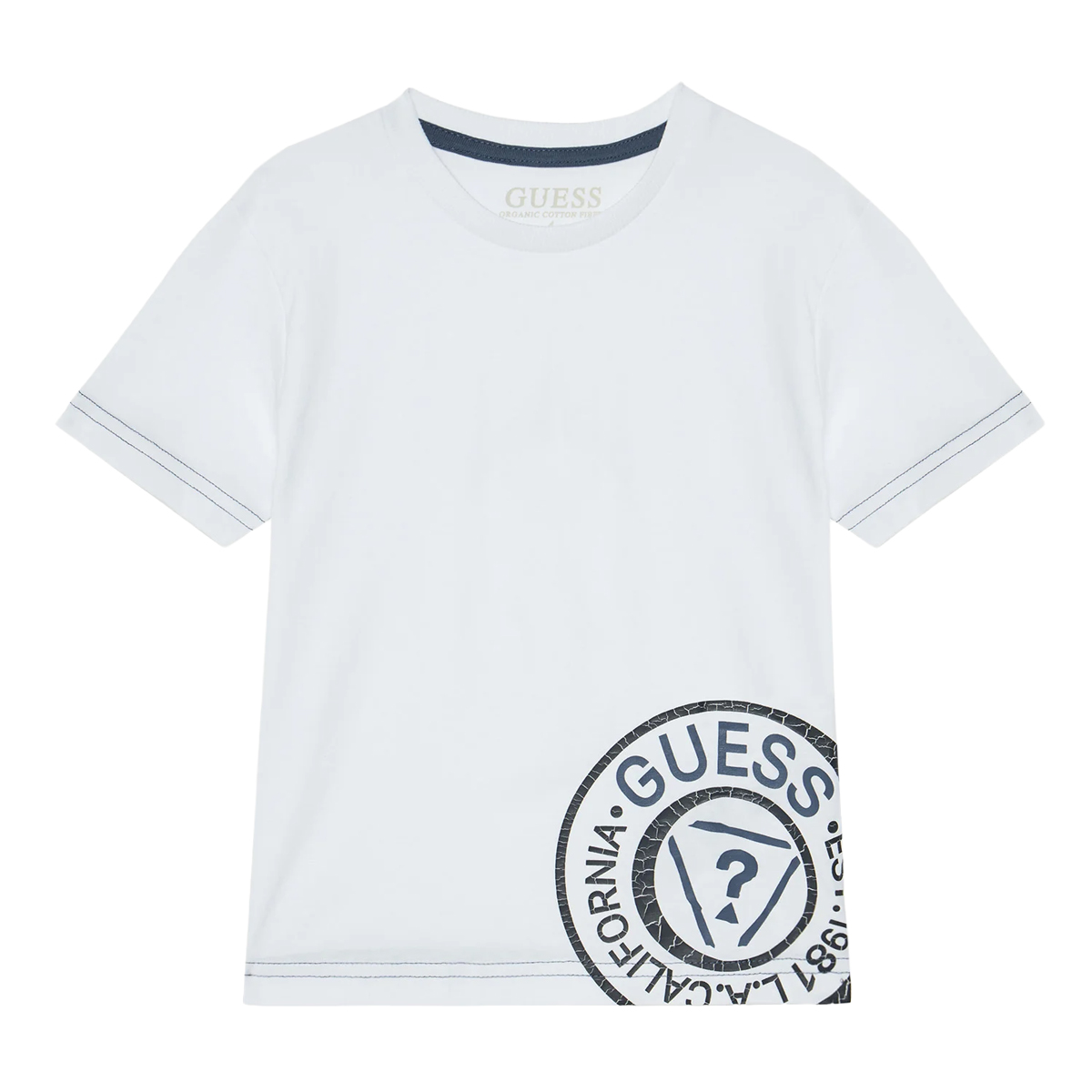 This T SHIRT SS T-SHIRT by GUESS is a foundational piece defined by its classic silhouette and a bold, asymmetrical graphic print near the hem. The garment features a sturdy crew neck collar and a regular fit through the torso, with precision-engineered stitching on the sleeves that ensures a clean-lined profile.