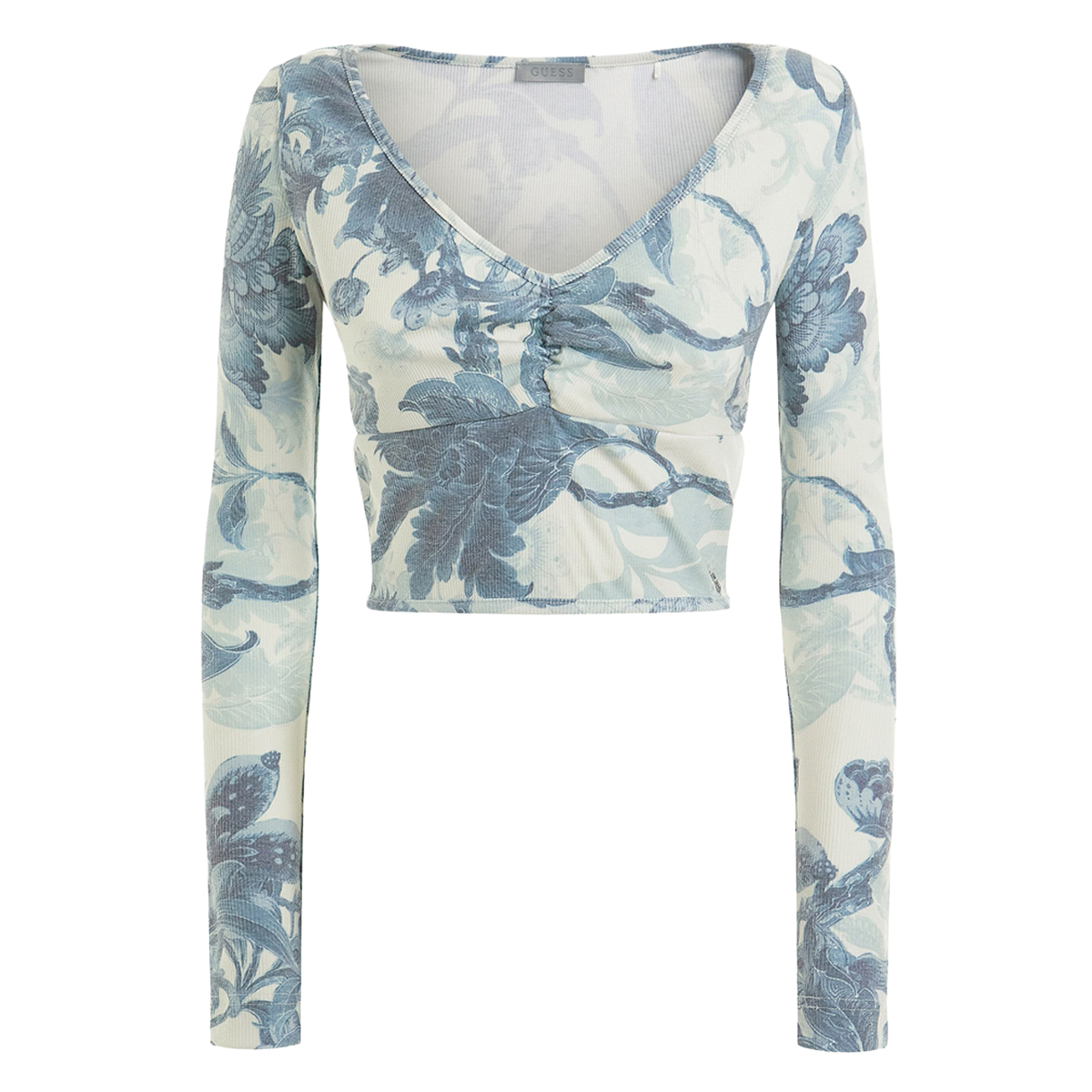 TOP, FOR WOMEN, LONG SLEEVES, PATTERNED, MULTICOLOR, WITH LOGO