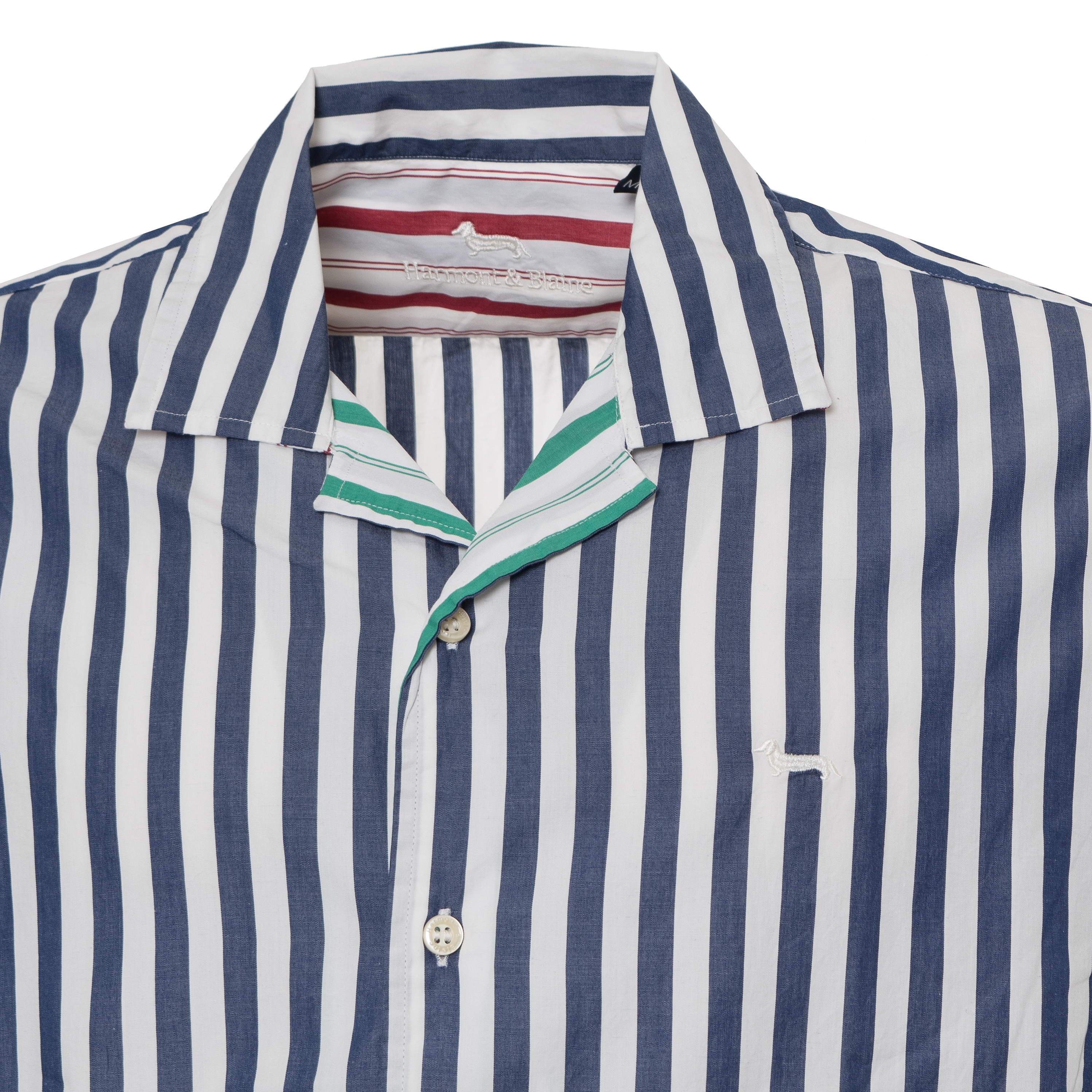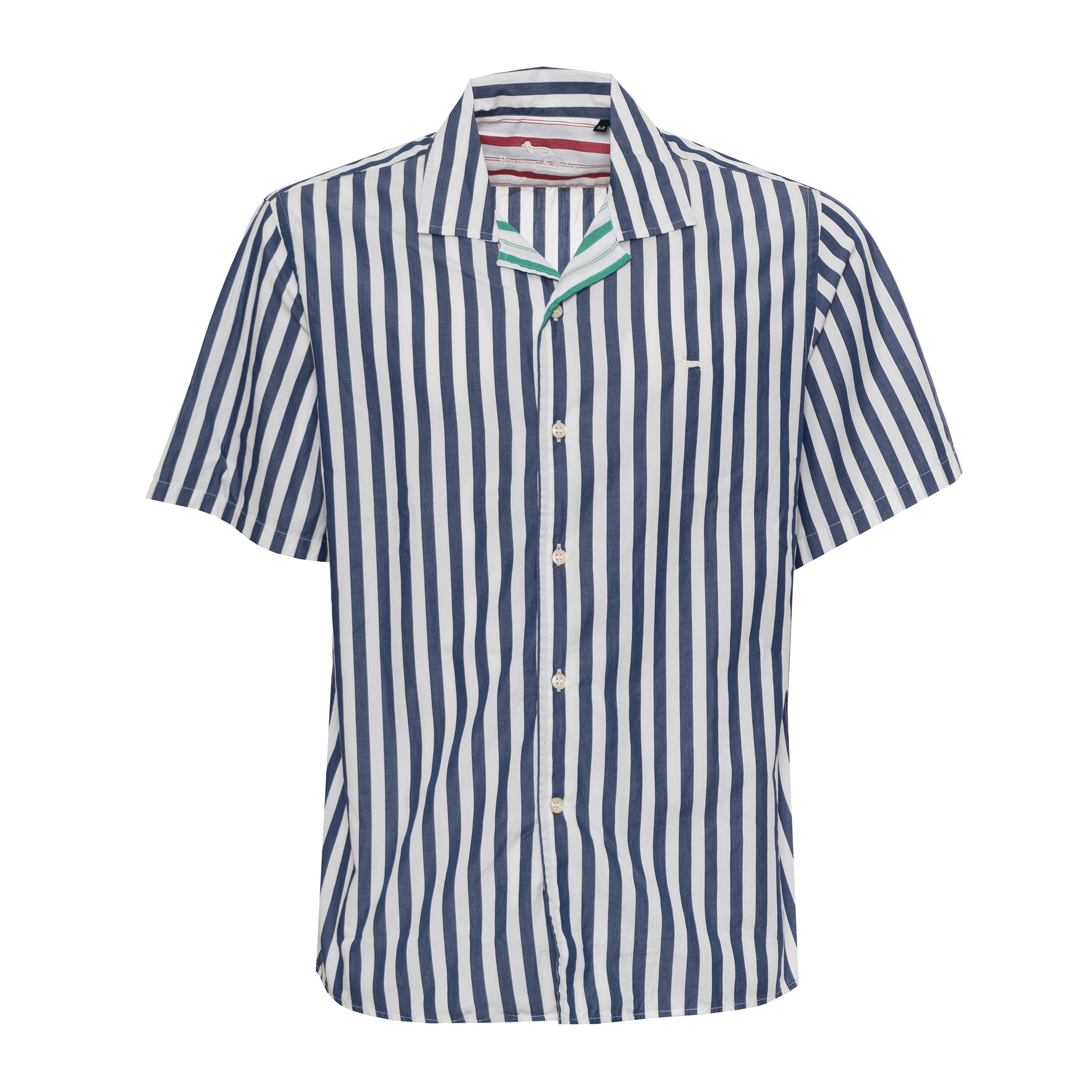 STRIPED SHIRT, FOR MEN, SHORT SLEEVES, BI-COLOR, EMBROIDERED LOGO, BUTTONS CLOSURE