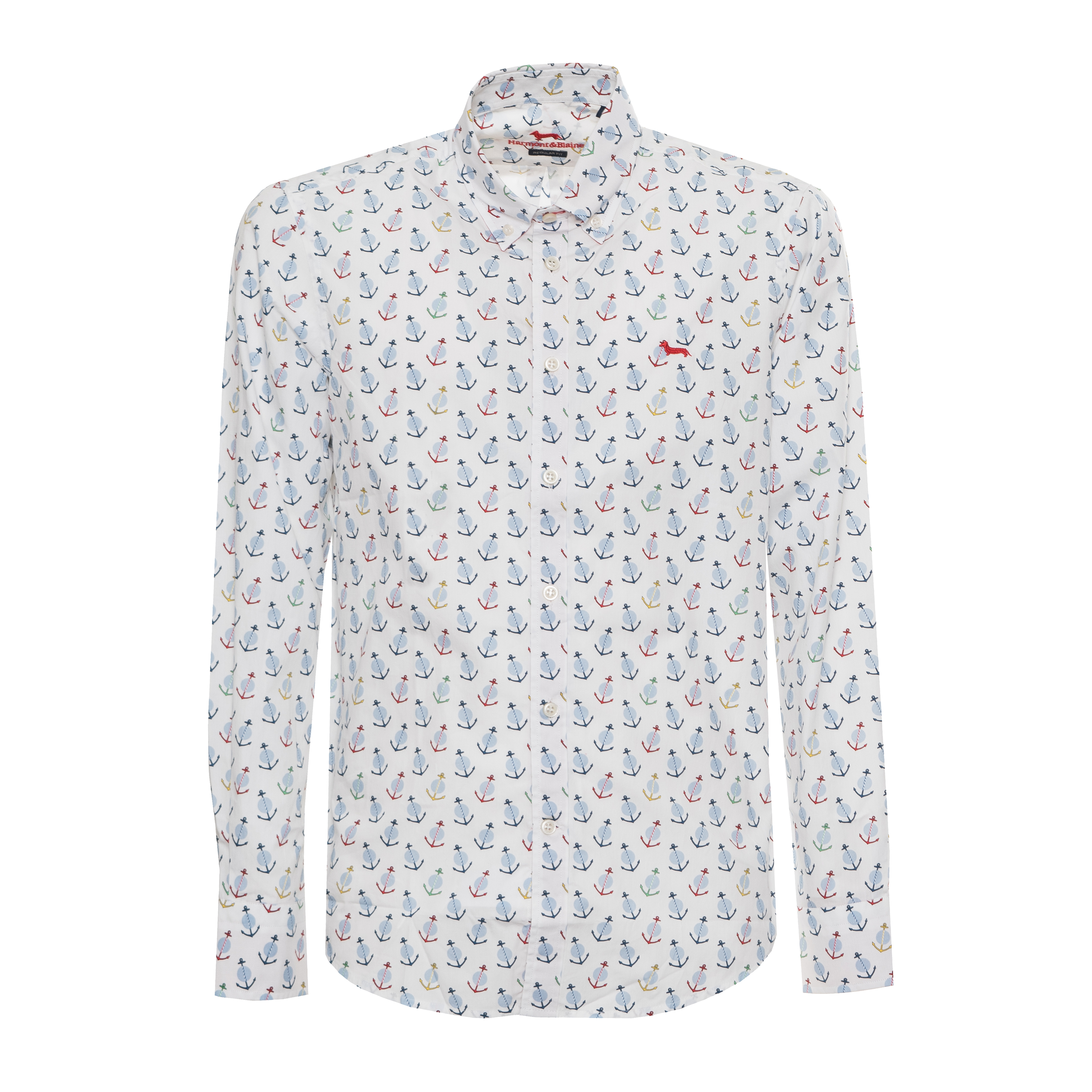 SHIRT, FOR MEN, BUTTON DOWN, REGULAR FIT, LONG SLEEVES, PATTERNED, MULTICOLOR, EMBROIDERED LOGO, BUTTONS CLOSURE