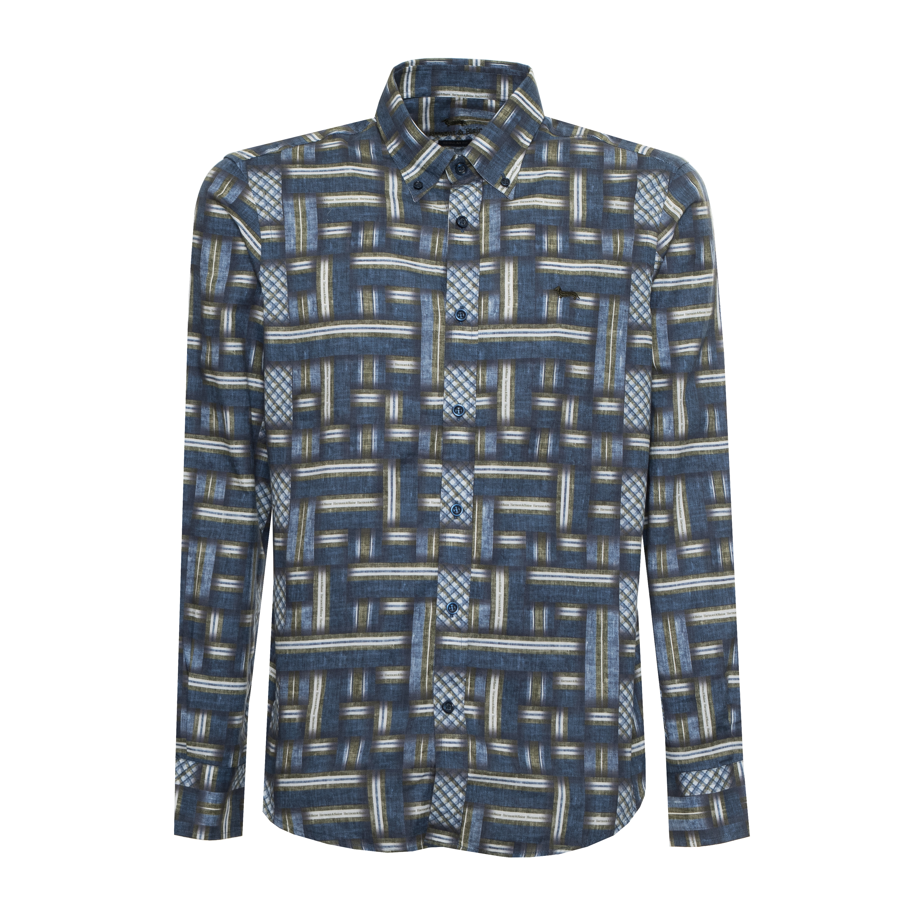 SHIRT, FOR MEN, BUTTON DOWN, REGULAR FIT, LONG SLEEVES, PATTERNED, MULTICOLOR, WITH LOGO, BUTTONS CLOSURE