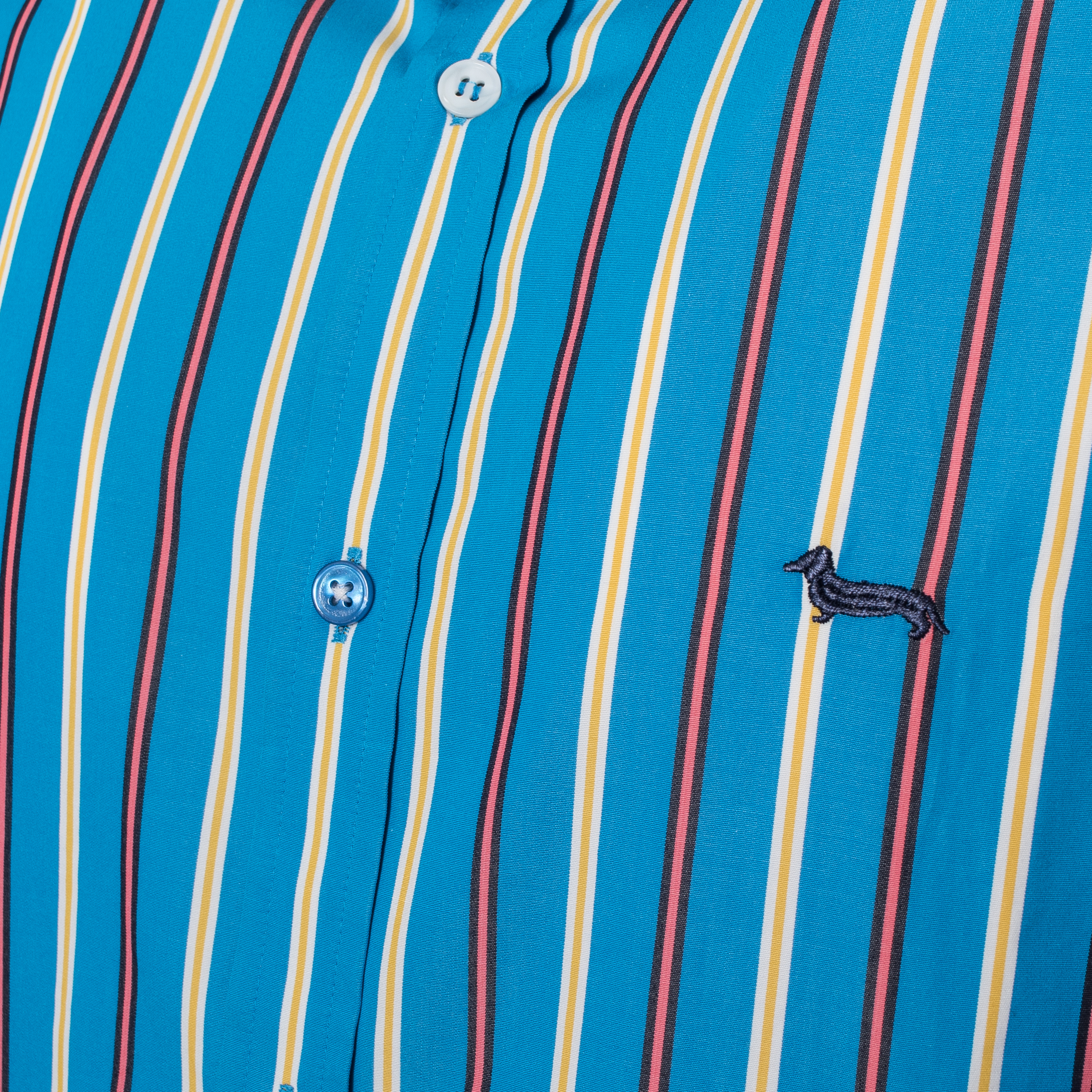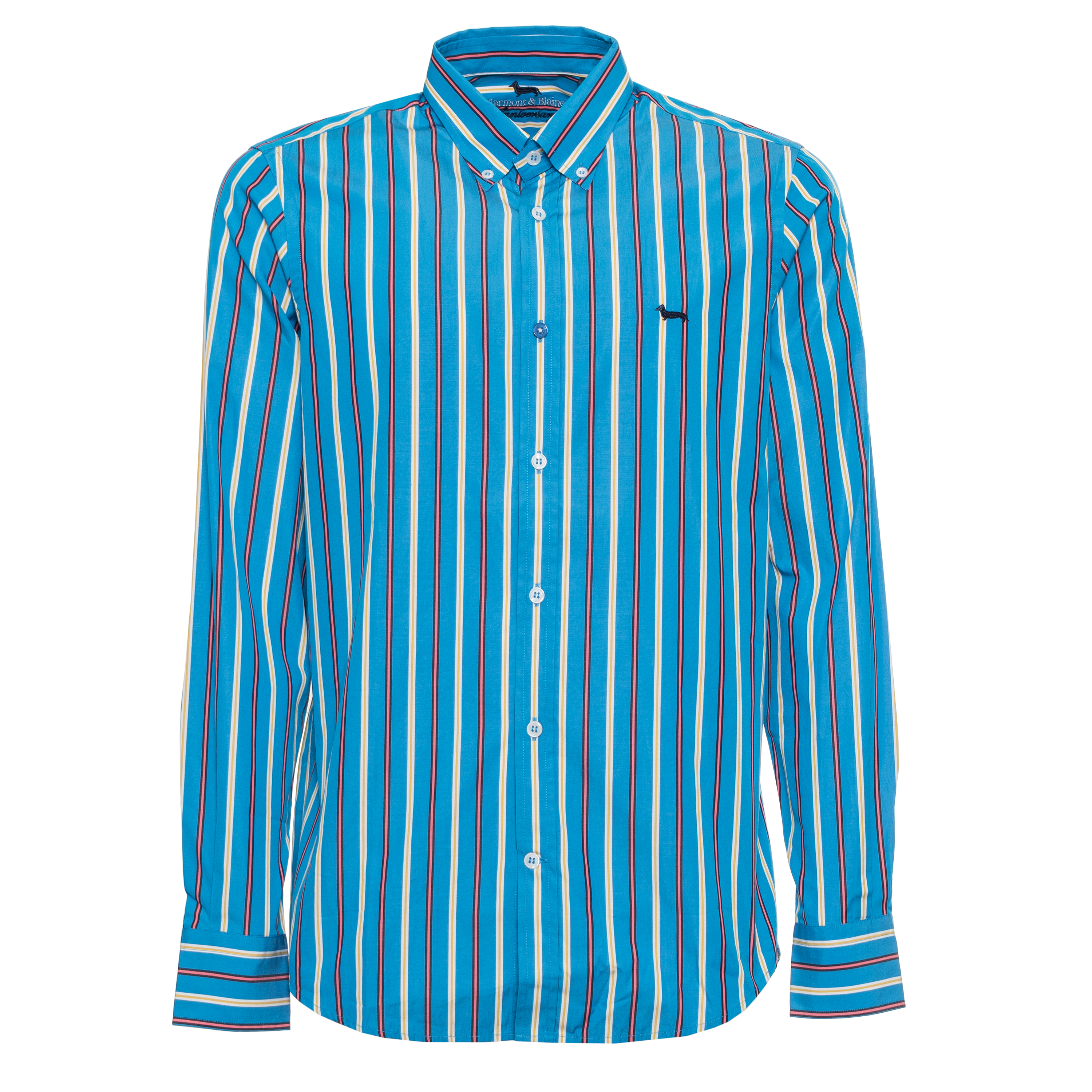 STRIPED SHIRT, FOR MEN, BUTTON DOWN, LONG SLEEVES, MULTICOLOR, EMBROIDERED LOGO, BUTTONS CLOSURE