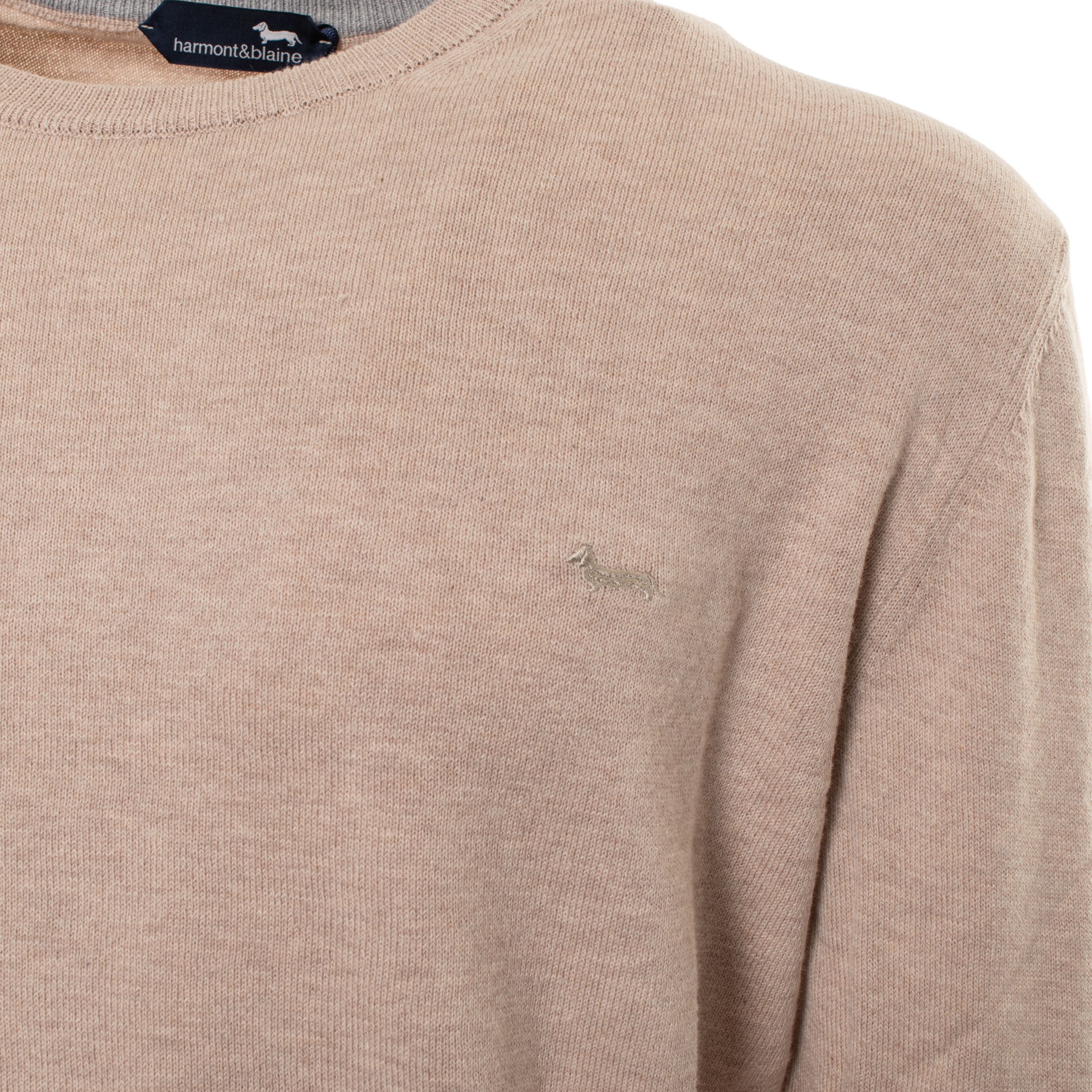 KNITWEAR, FOR MEN, ROUND NECK, LONG SLEEVES, SOLID COLOUR, EMBROIDERED LOGO