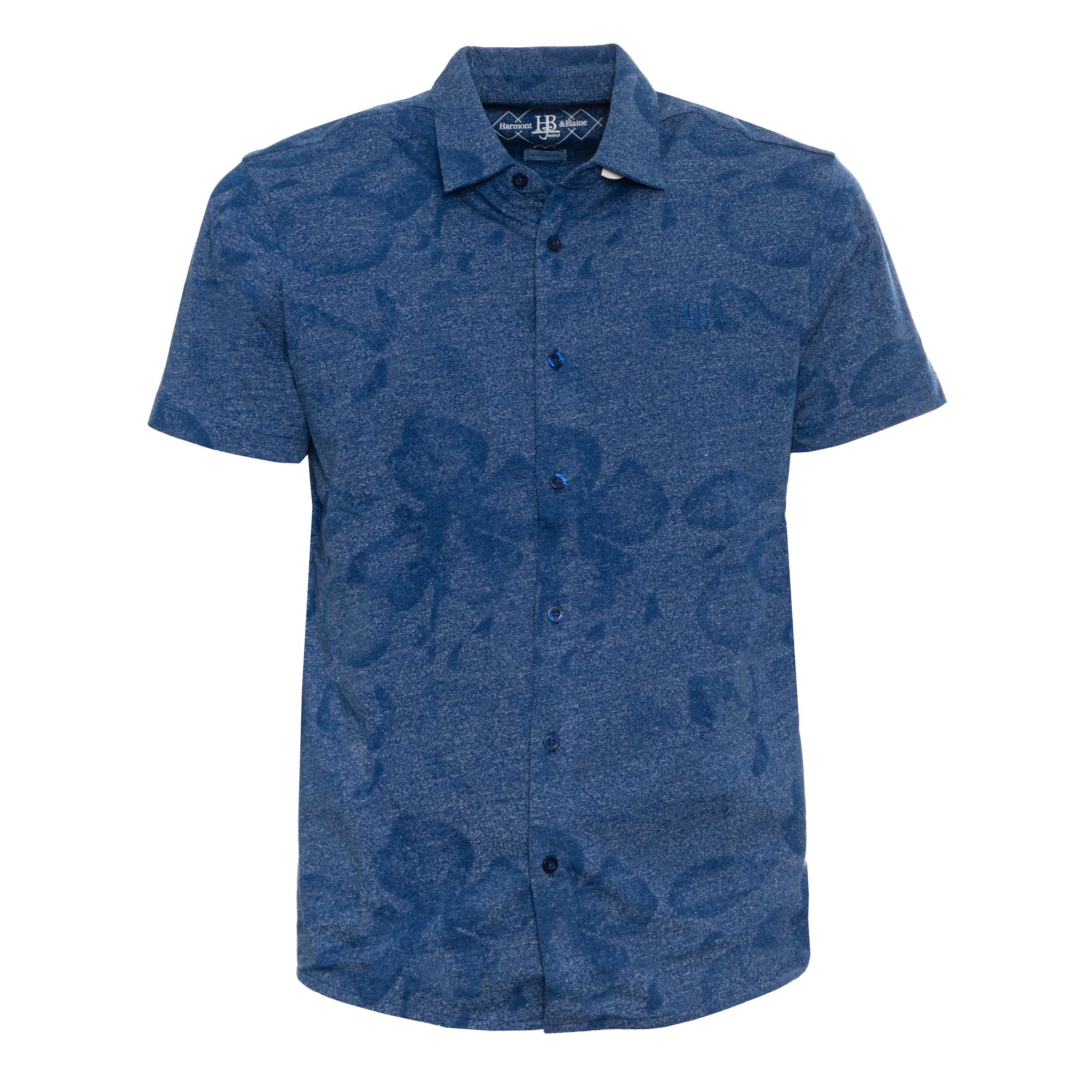SHIRT, FOR MEN, BASIC COLLAR, REGULAR FIT, SHORT SLEEVES, PATTERNED, BI-COLOR, EMBROIDERED LOGO, BUTTONS CLOSURE