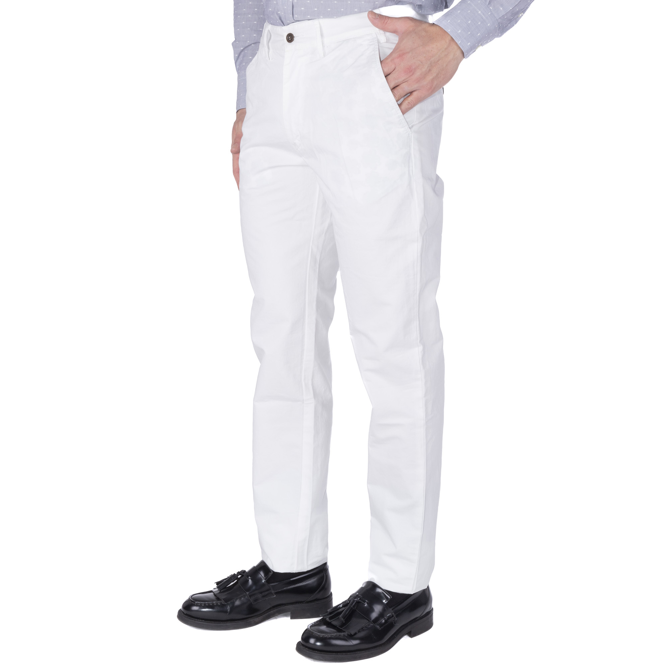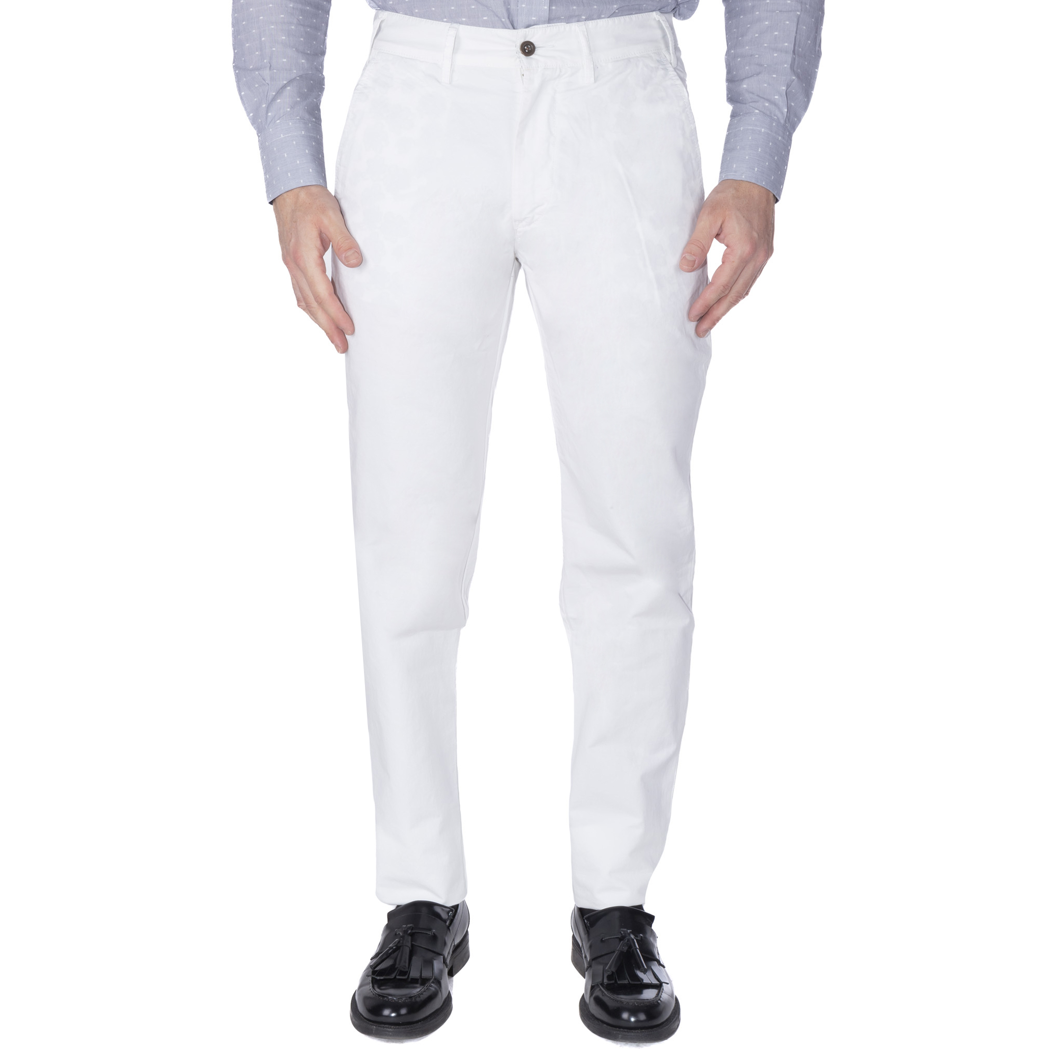TROUSERS, FOR MEN, FOUR POCKETS, CHINO, SOLID COLOUR, EMBROIDERED LOGO, ZIP AND BUTTON CLOSURE