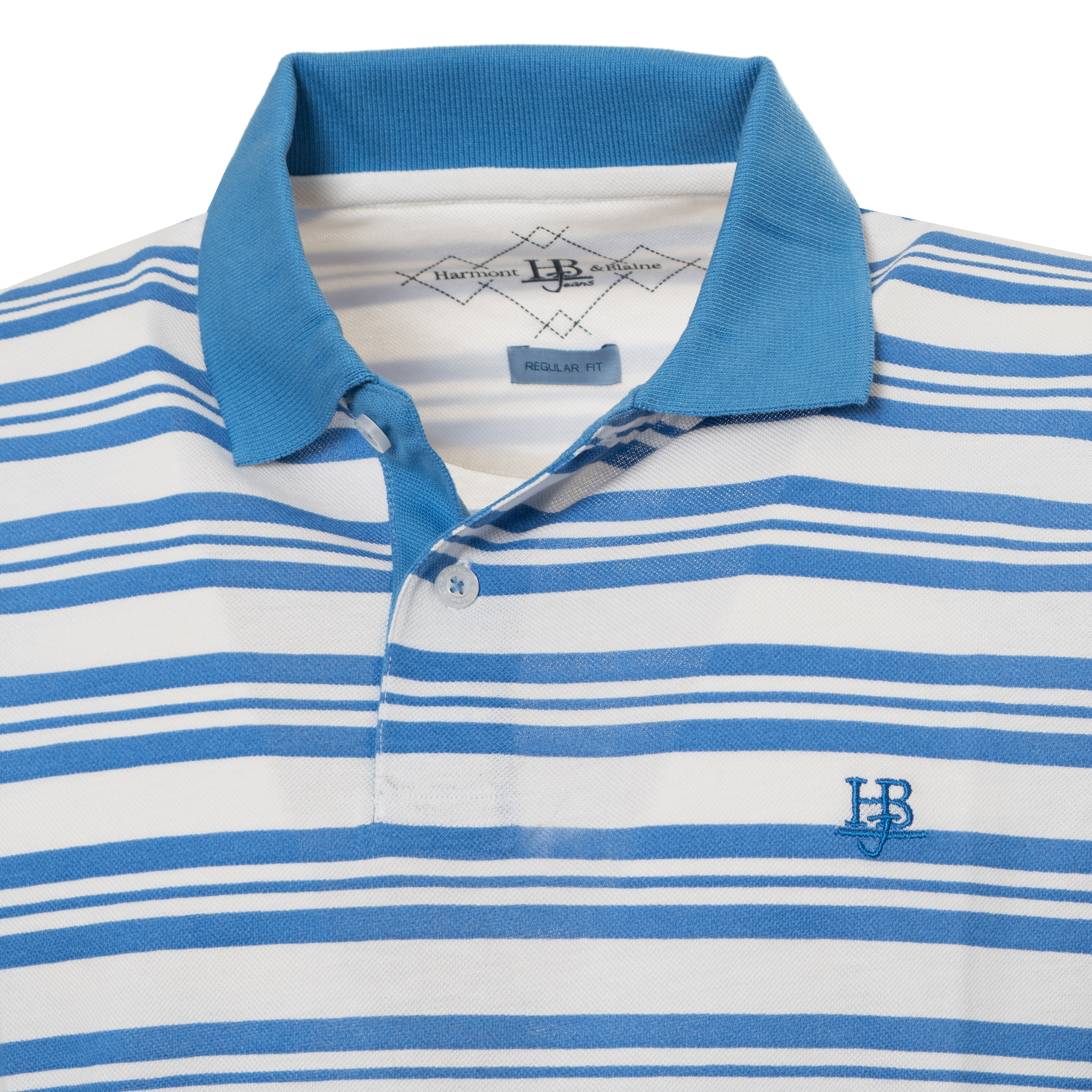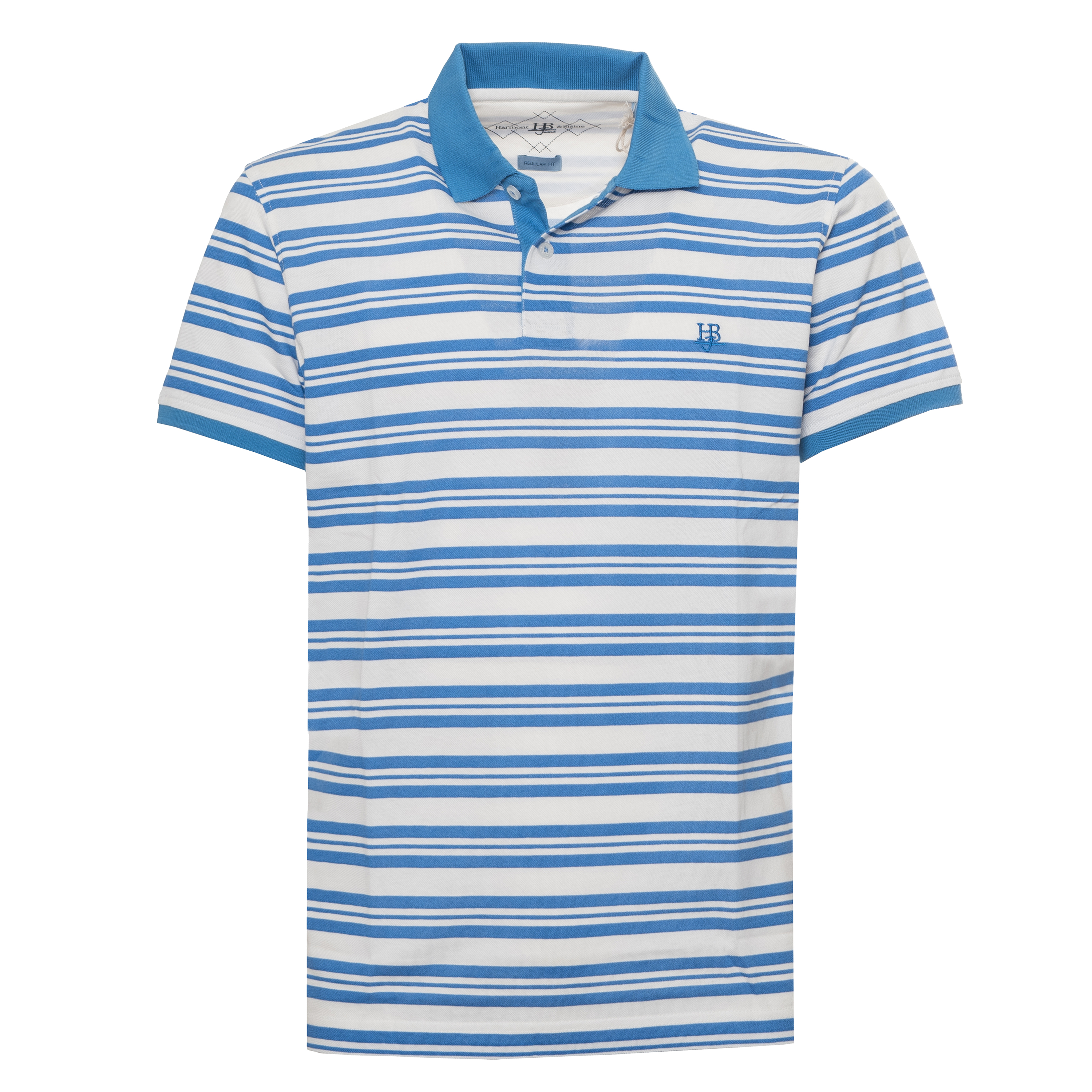 POLO SHIRT, FOR MEN, SHORT SLEEVES, STRIPES, BI-COLOR, EMBROIDERED LOGO