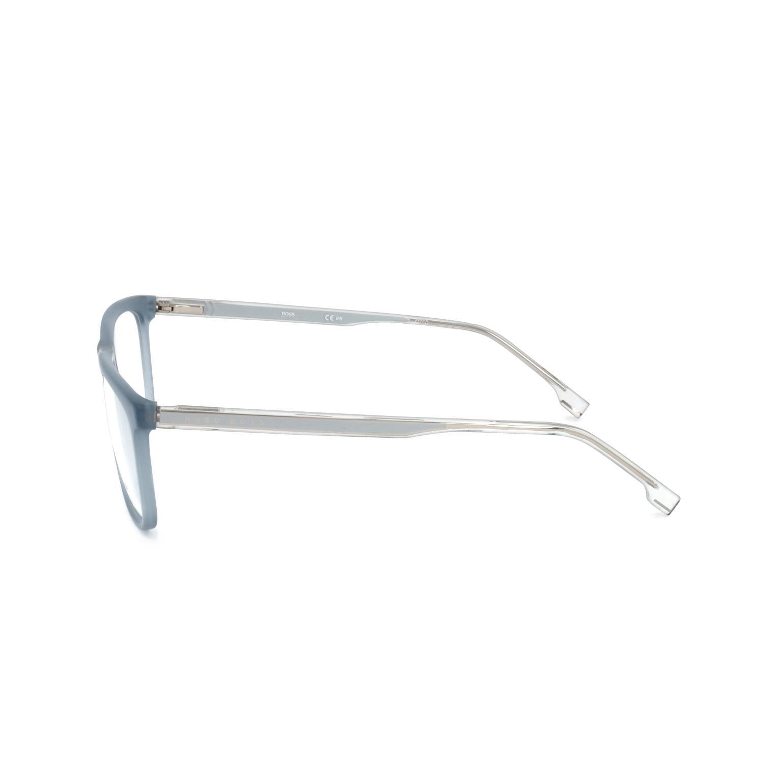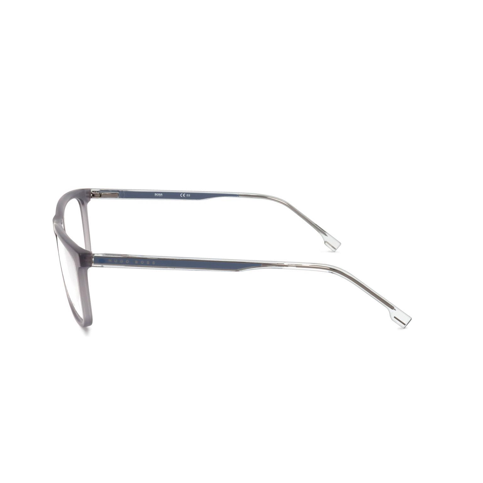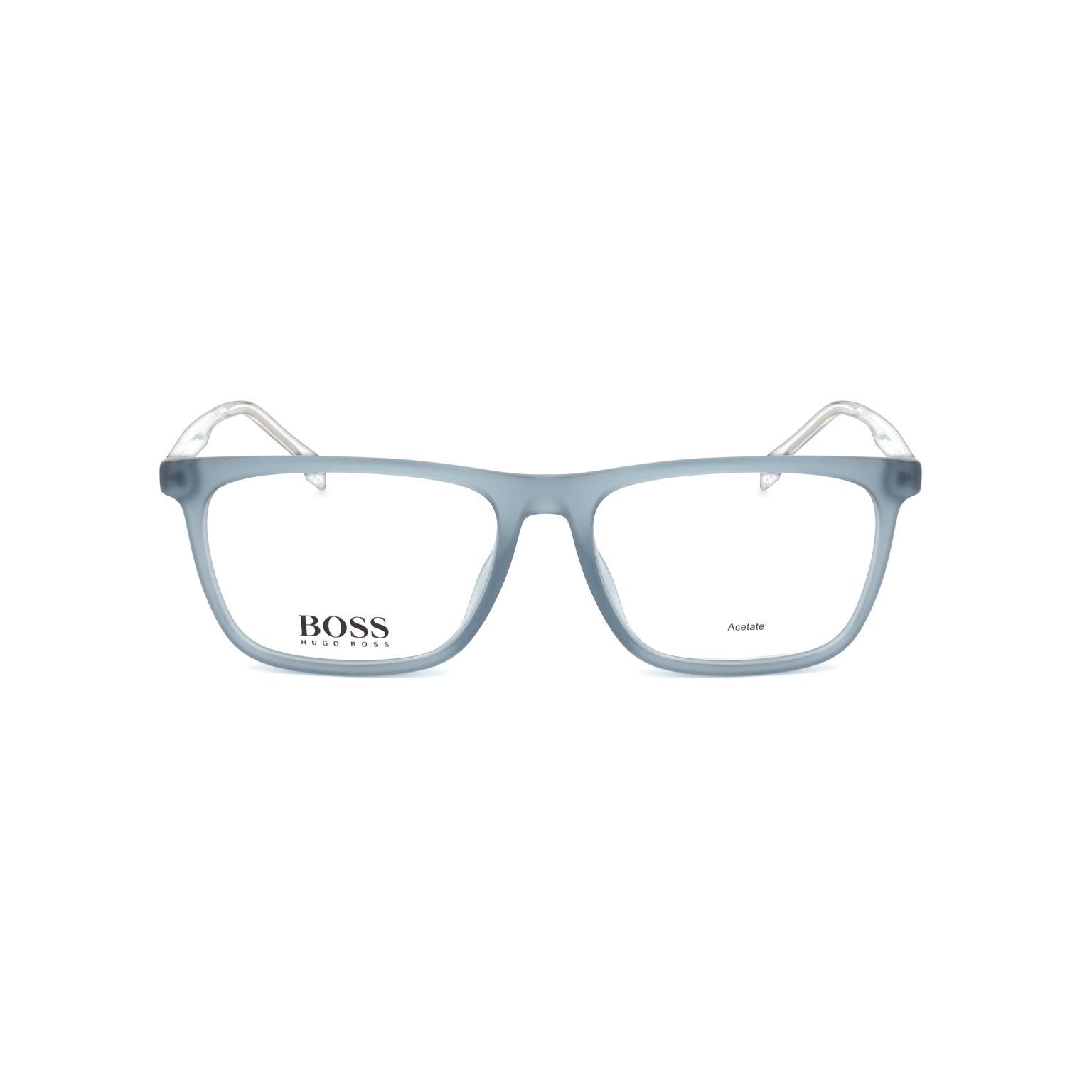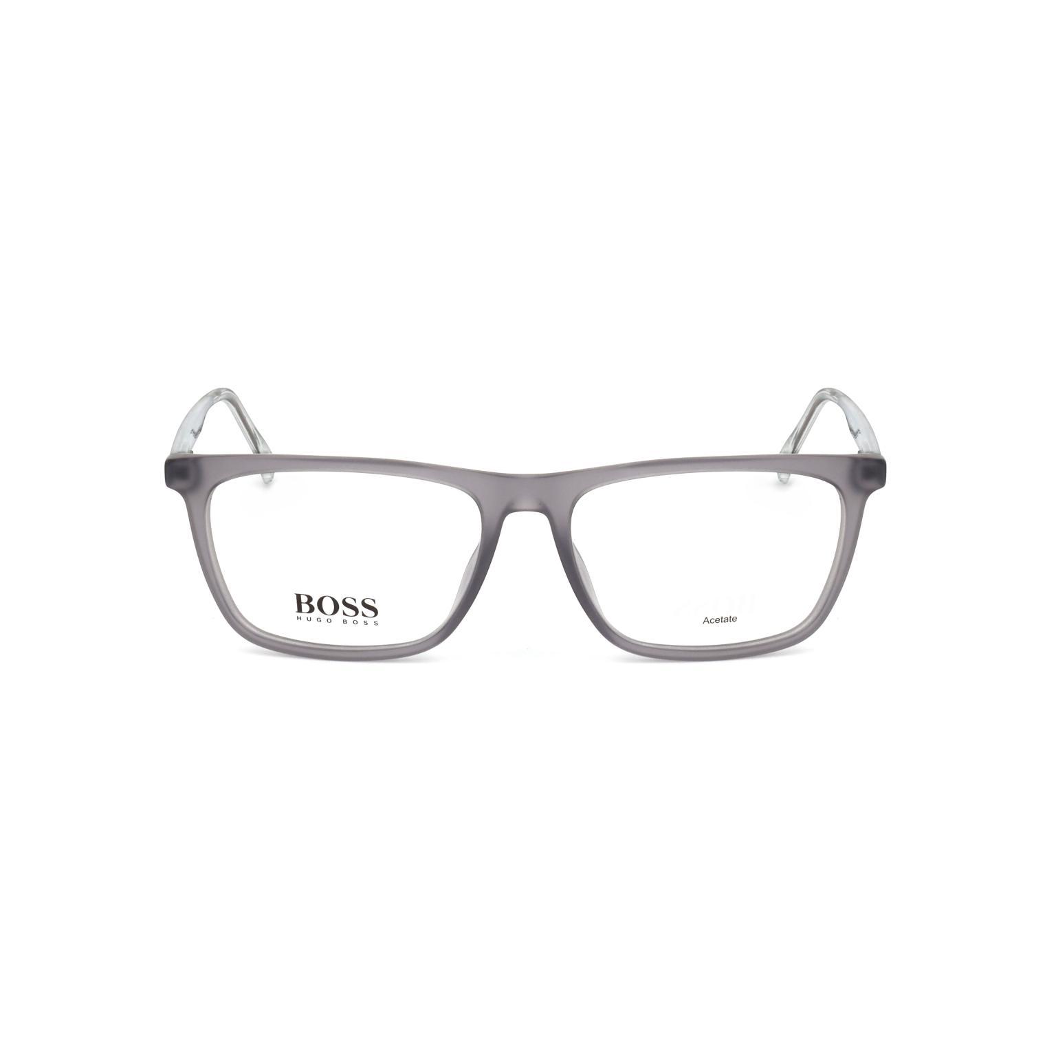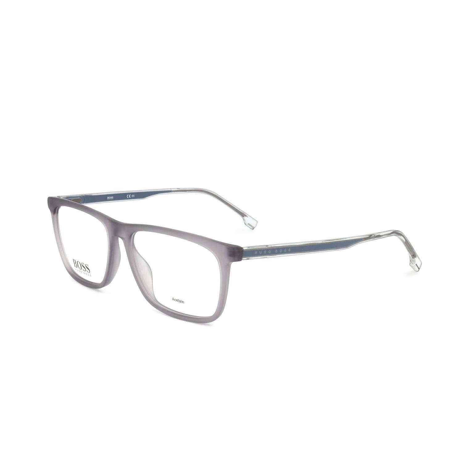 This eyewear selection from HUGO BOSS showcases a geometric silhouette with softened corners, offering a refined architectural aesthetic. The frames feature a distinct matte surface treatment that interacts subtly with light, providing a sophisticated alternative to high-gloss finishes. The straight brow line and integrated bridge create a cohesive profile that emphasizes precise craftsmanship.